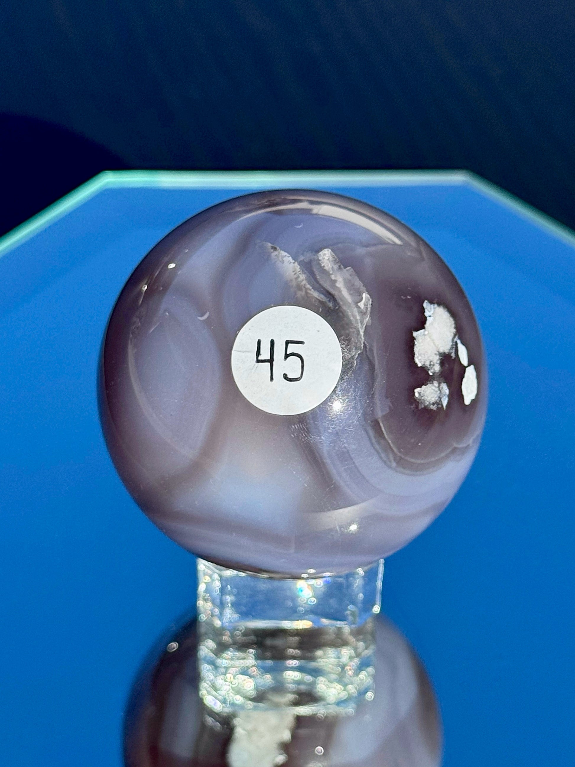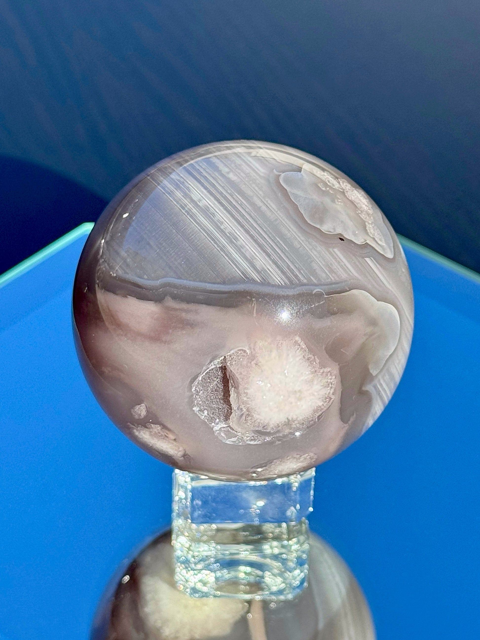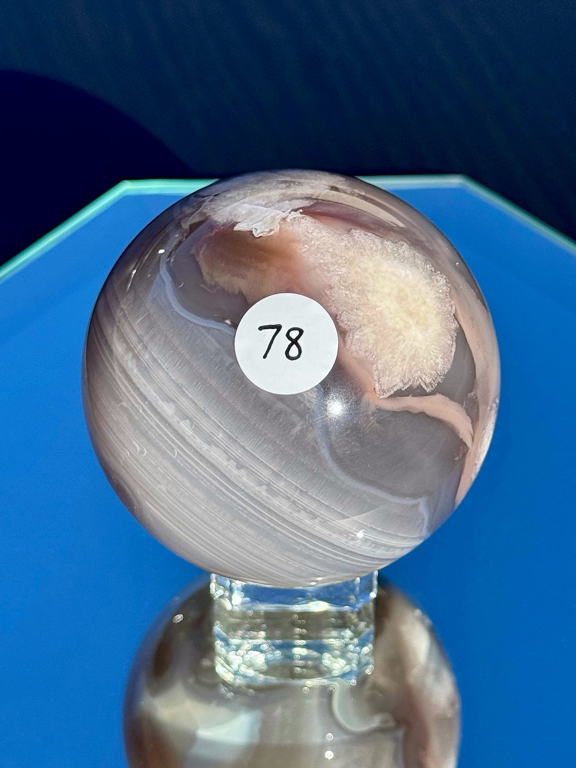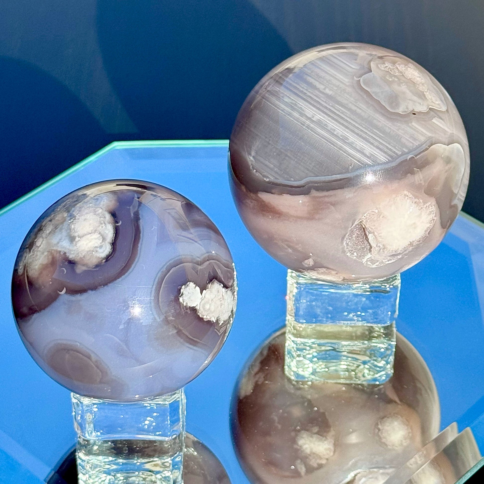 Look at these unique Black Flower Agate Spheres! Each one has its own beautiful banding and intricate flower pattern that will be sure to stand out in your collection.