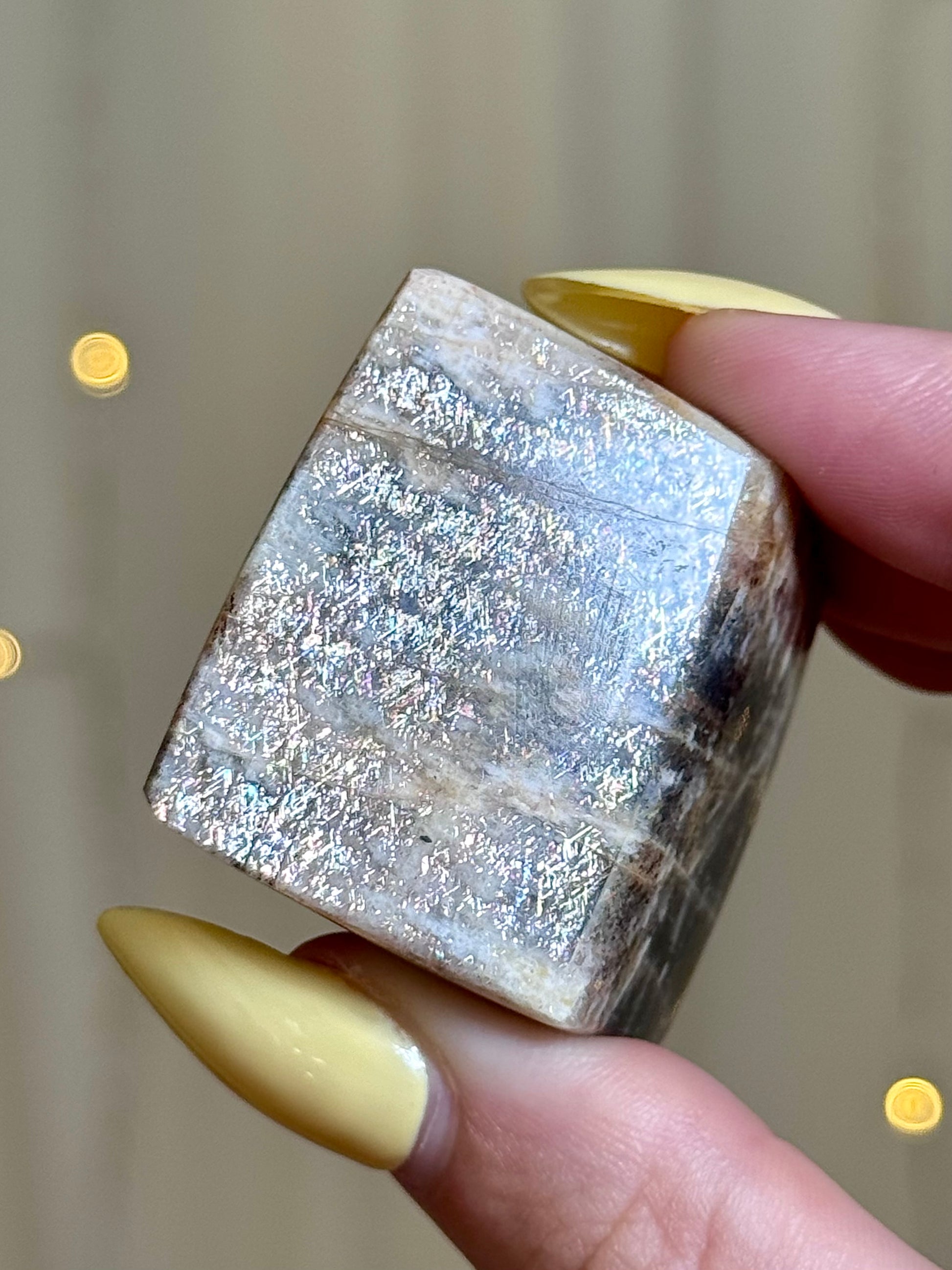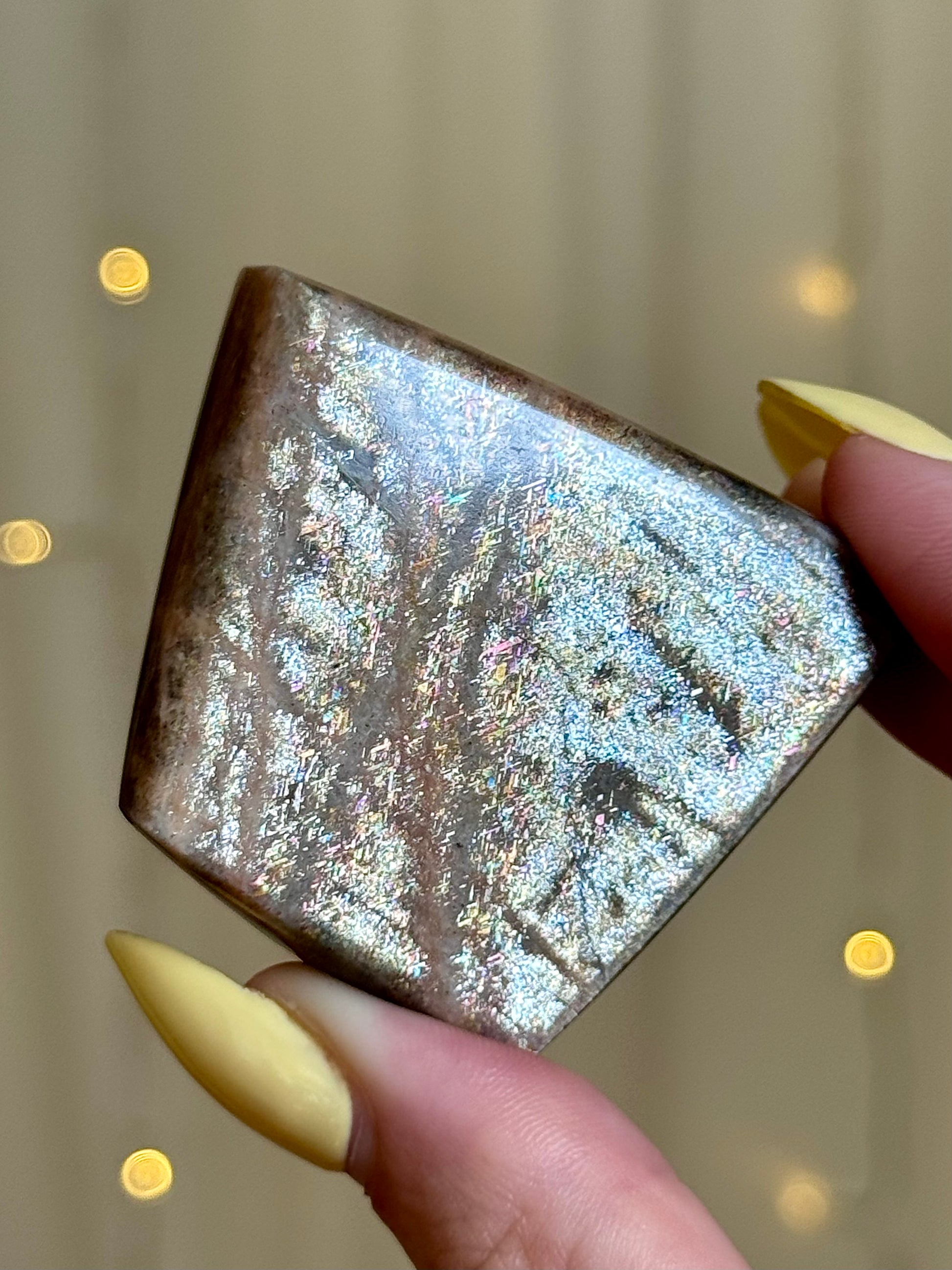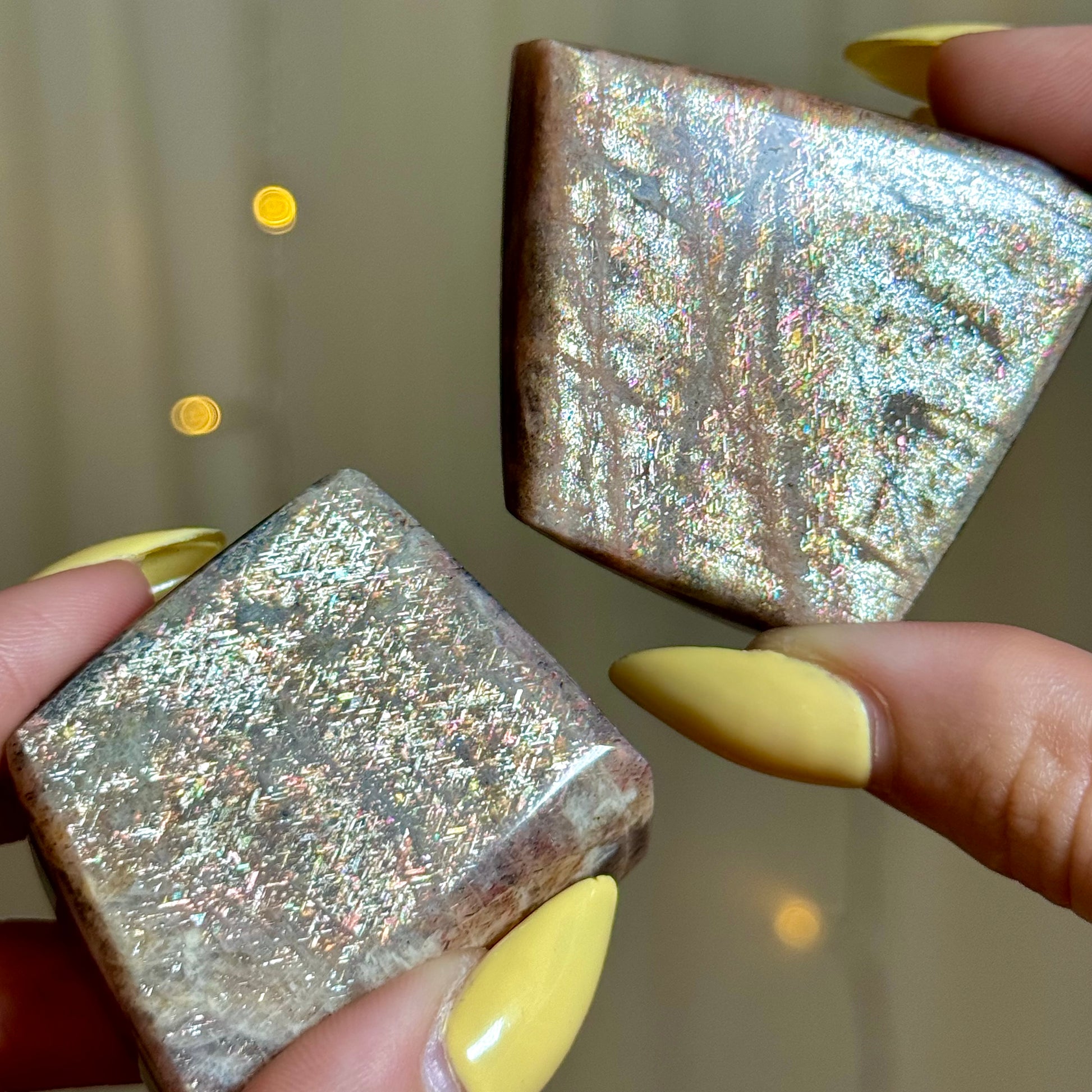 Get ready to be wowed by these incredible Black Sunstone Freeforms! Each piece features strong sunstone flash on each side, making them a must-have for any crystal collection.