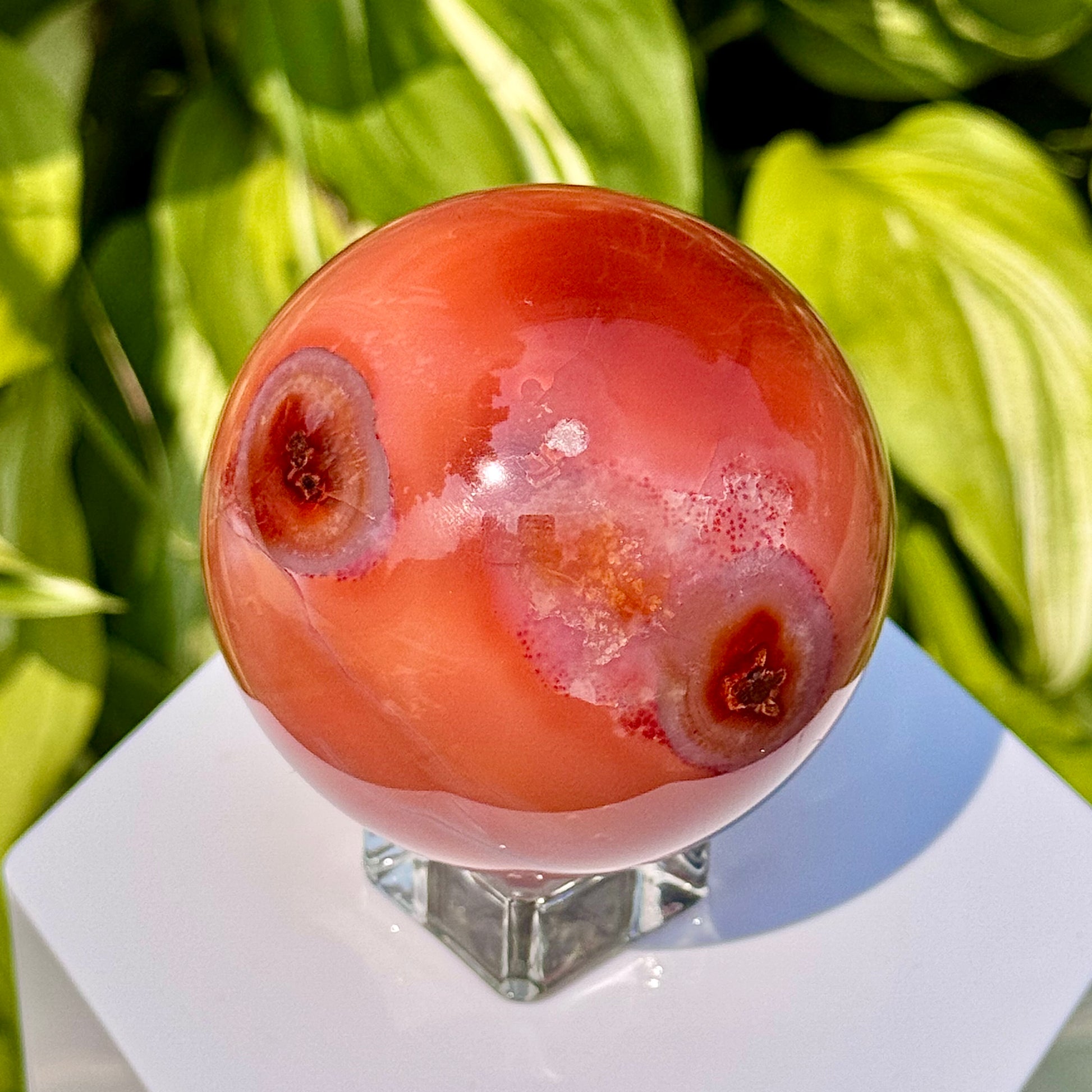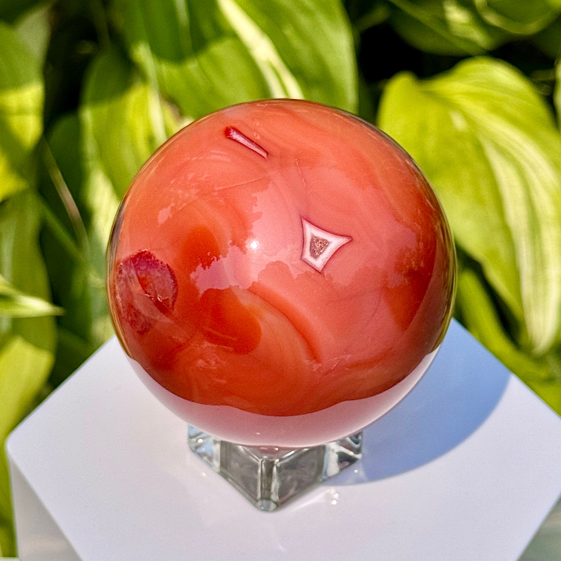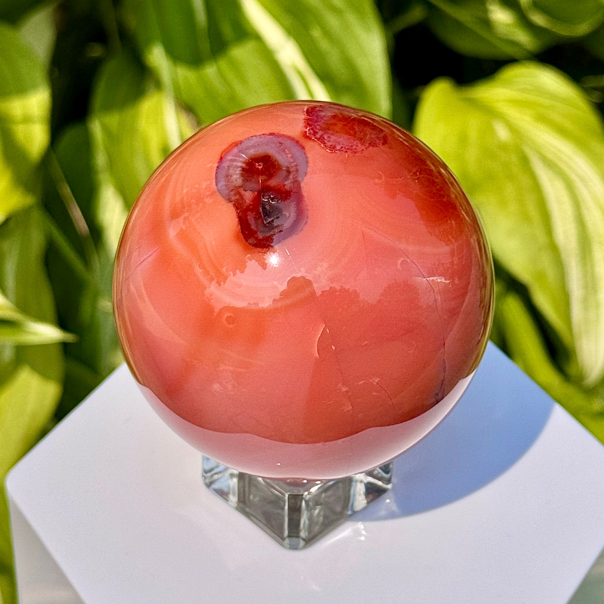 This Carnelian Sphere has a diameter of 67mm.