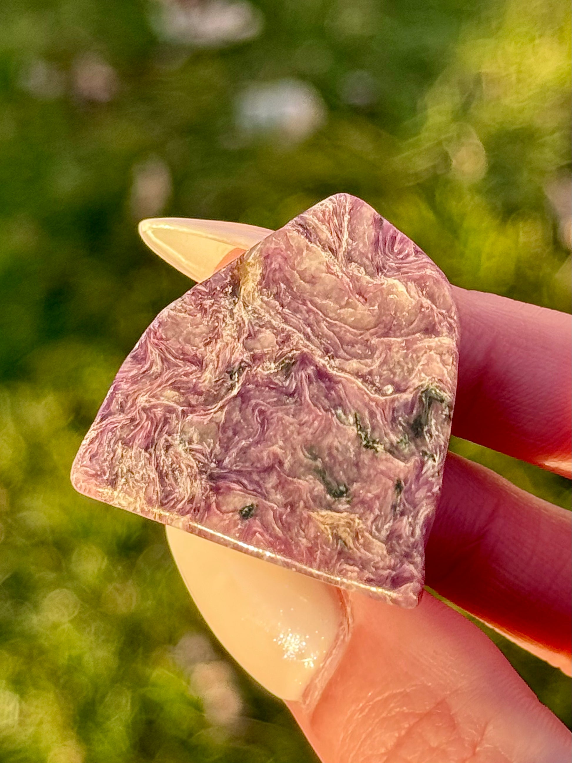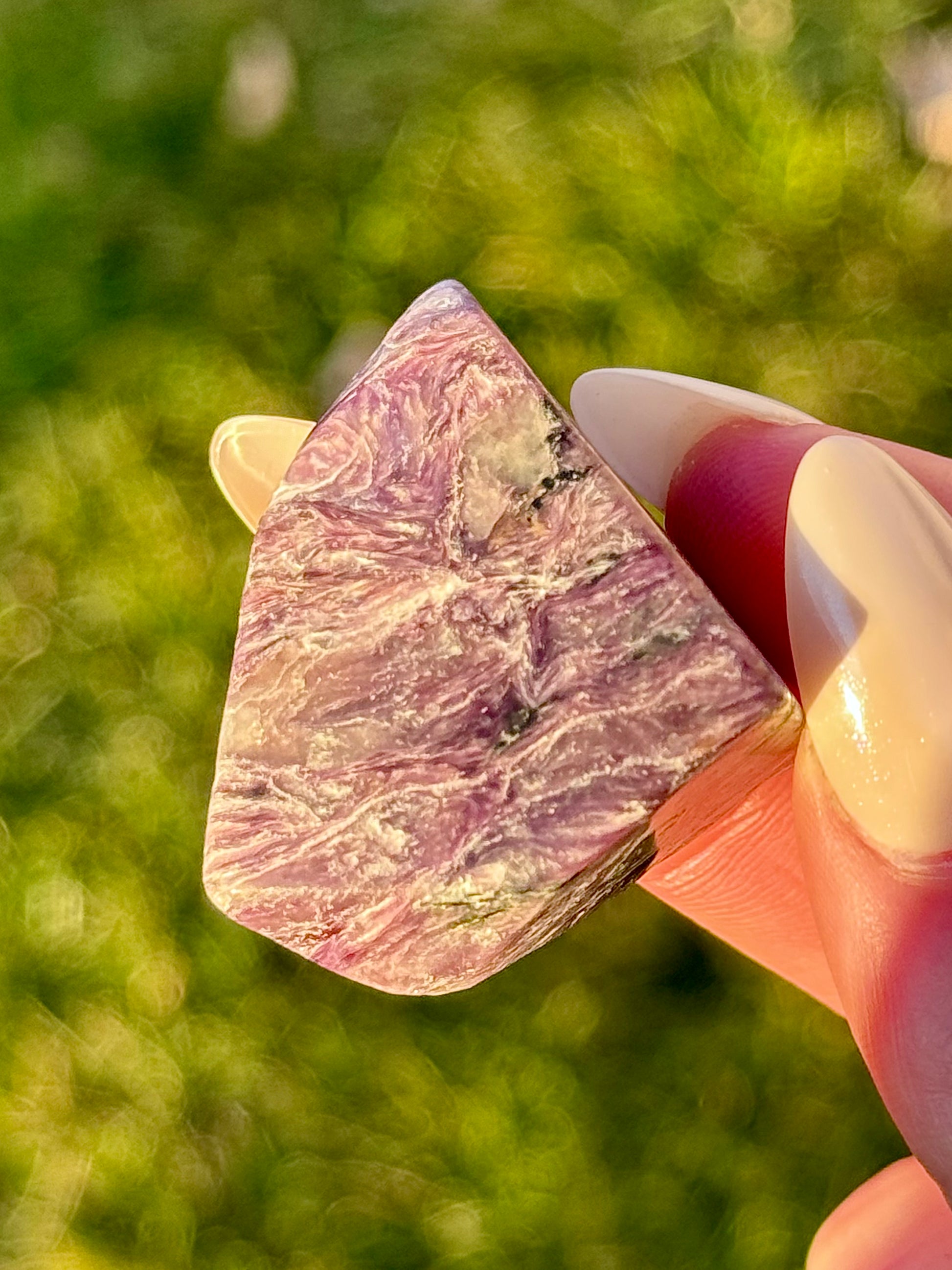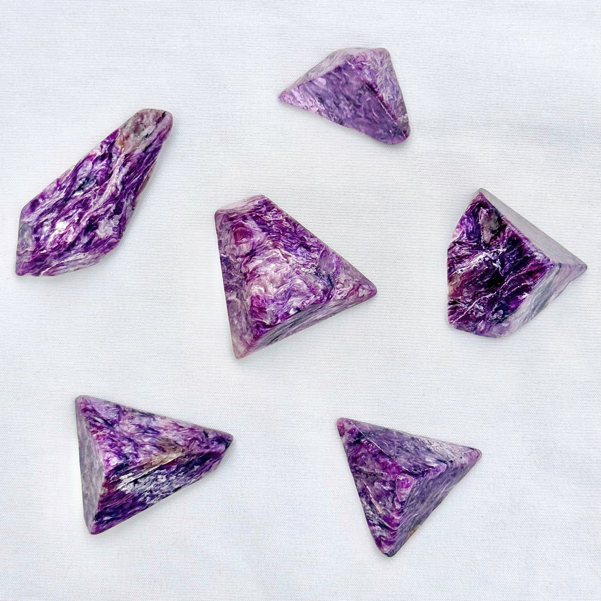 Look at how pretty the patterns are on these Charoite Freeforms! Charoite is a rare material, so it typically has a high price point. However, these freeforms are small in size, making it attainable for anyone to take one home.