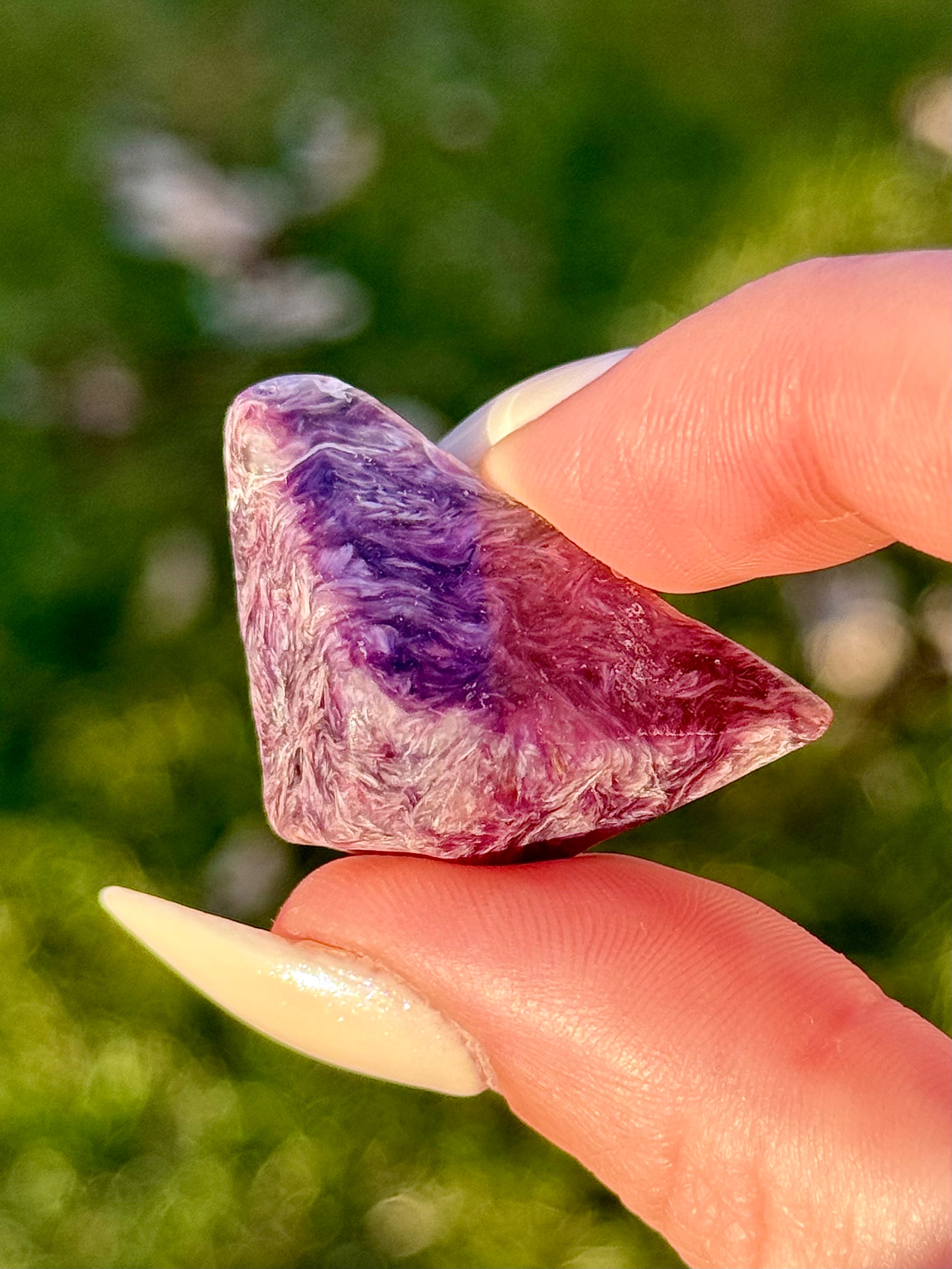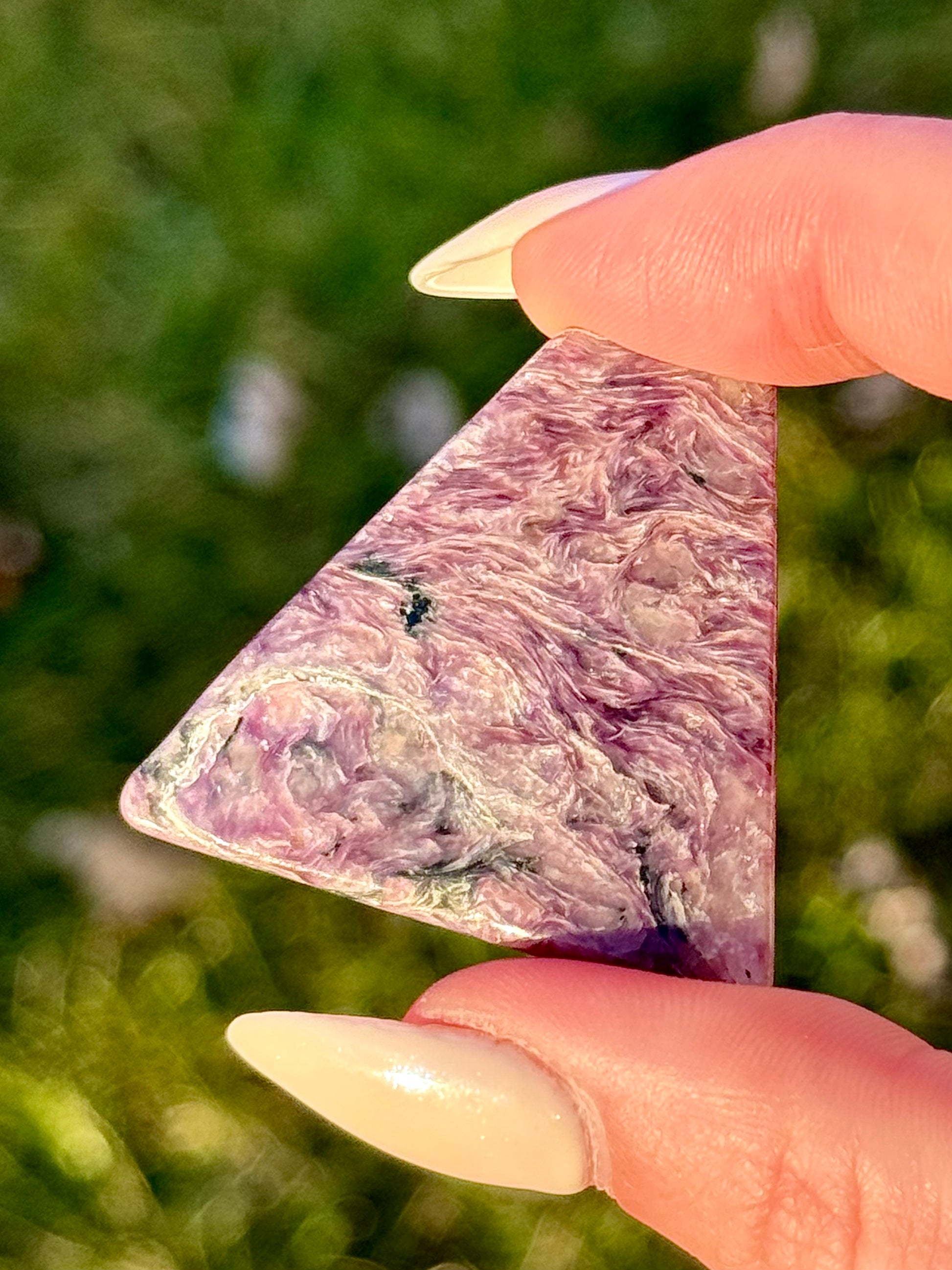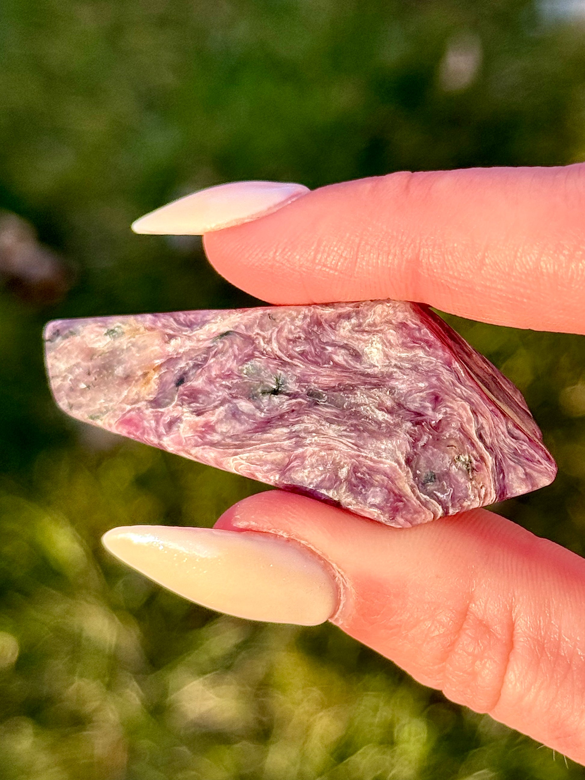 Look at how pretty the patterns are on these Charoite Freeforms! Charoite is a rare material, so it typically has a high price point. However, these freeforms are small in size, making it attainable for anyone to take one home.