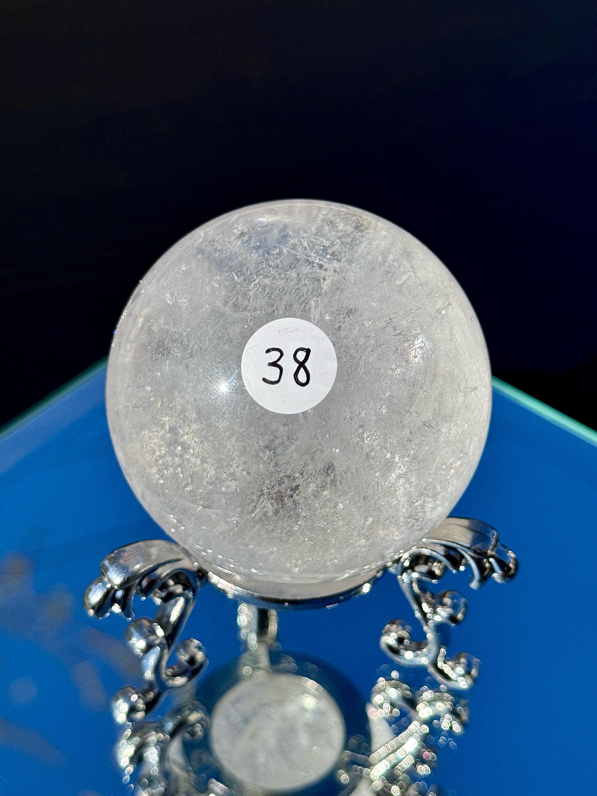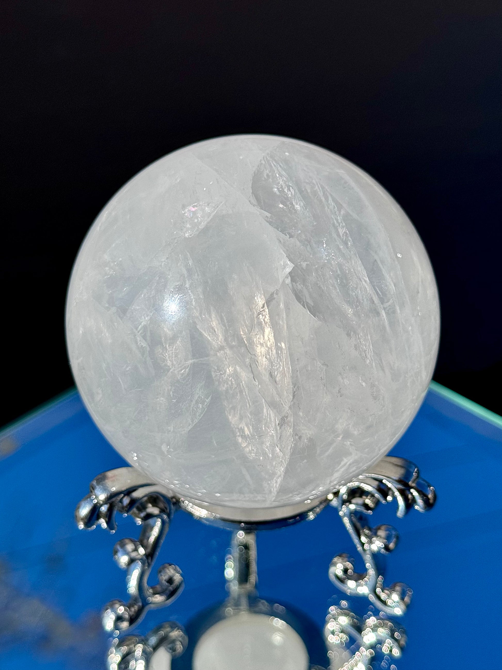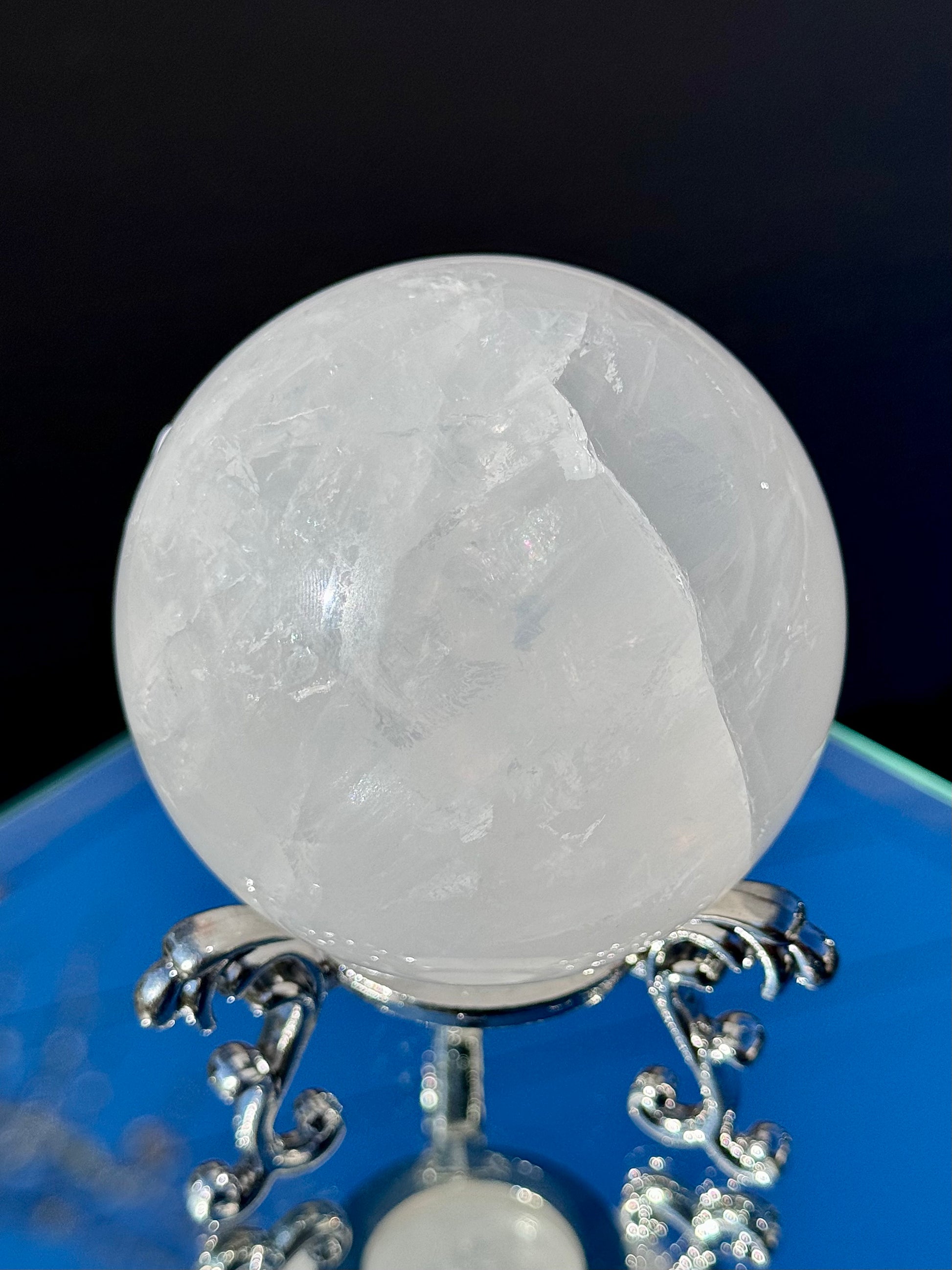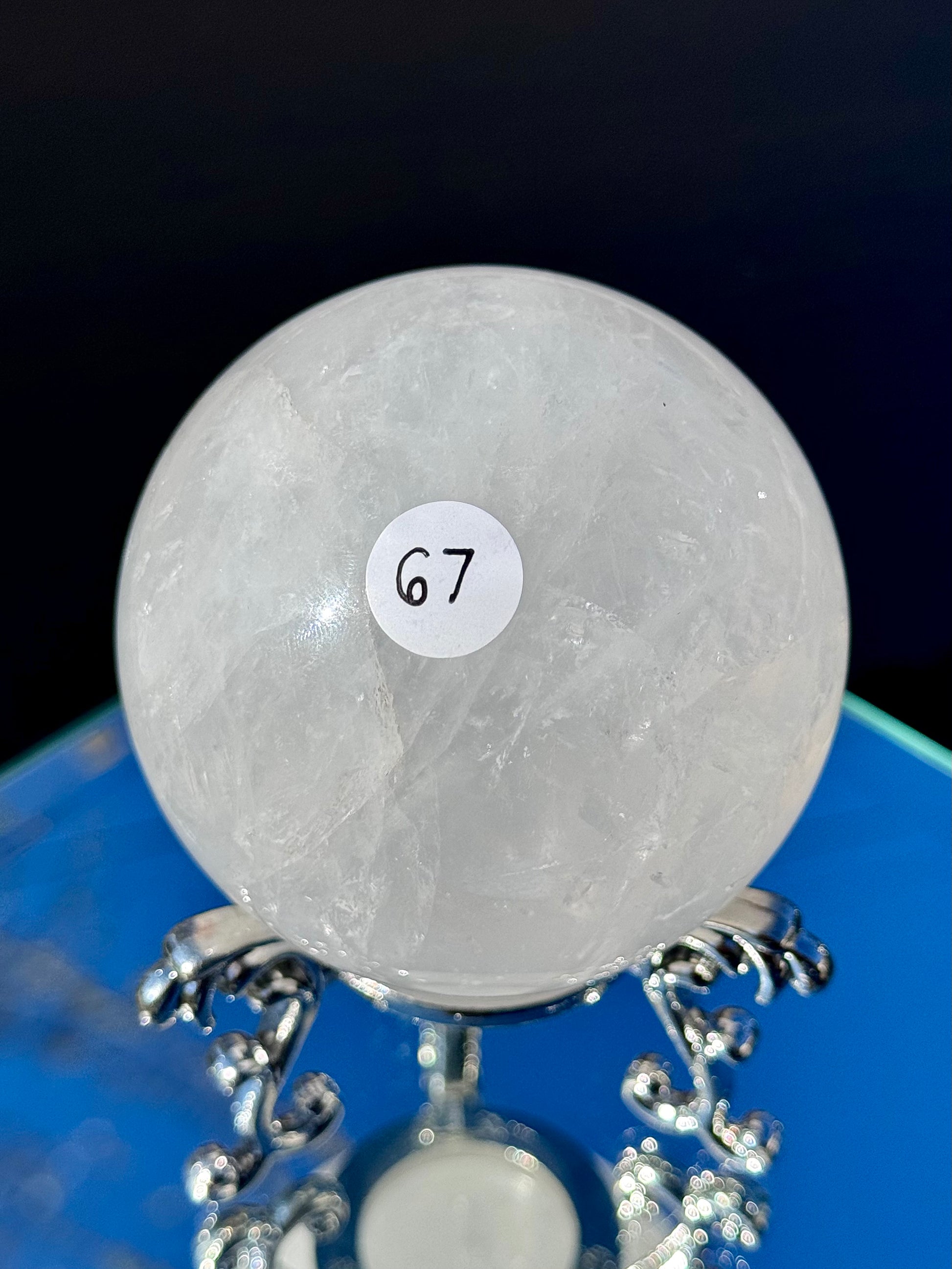 Our Clear Quartz Spheres come in sizes ranging from 48mm to 77mm in diameter and are full of shimmer and hidden rainbows.