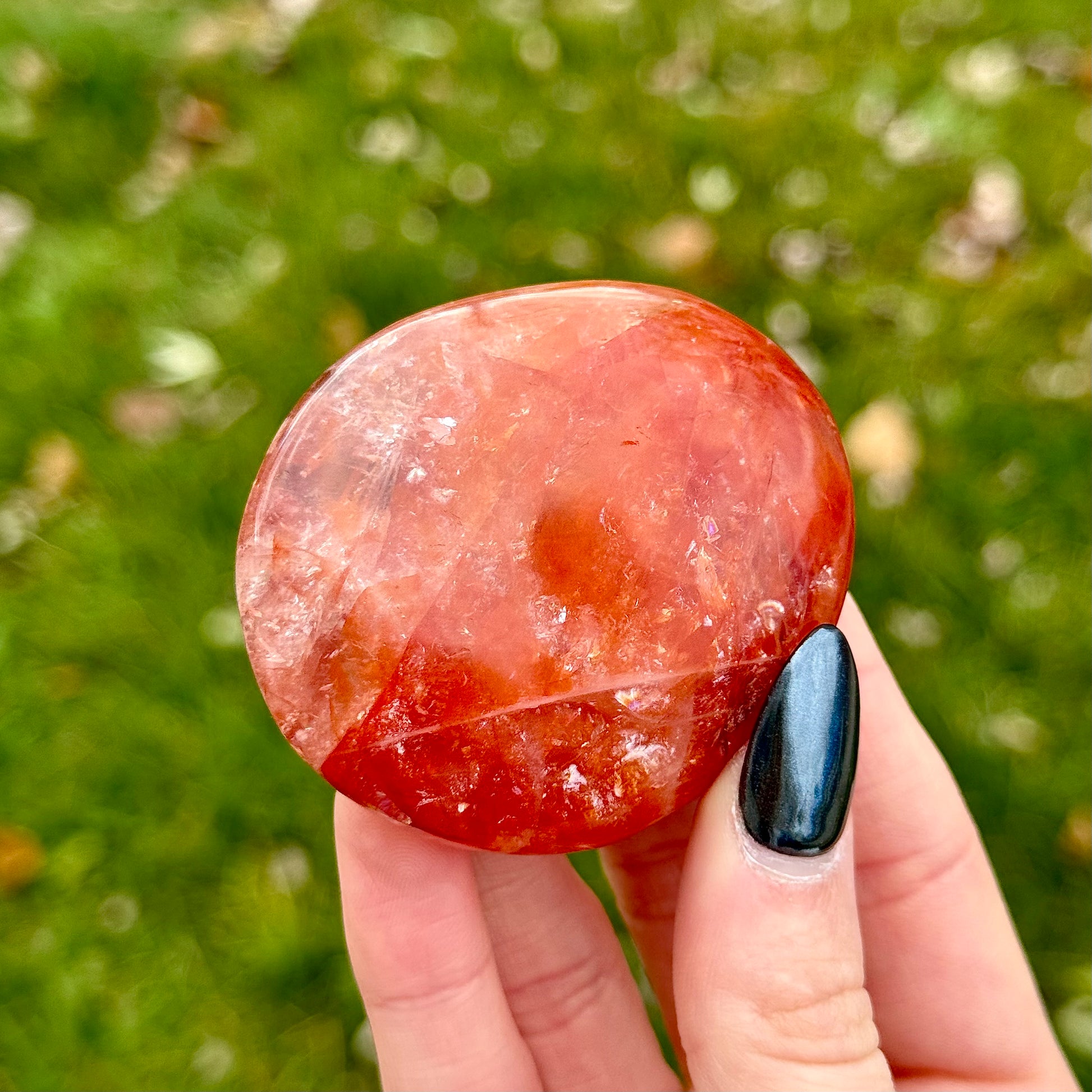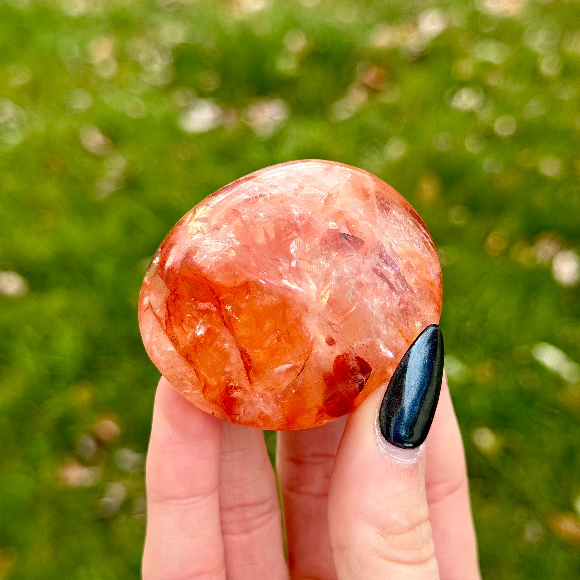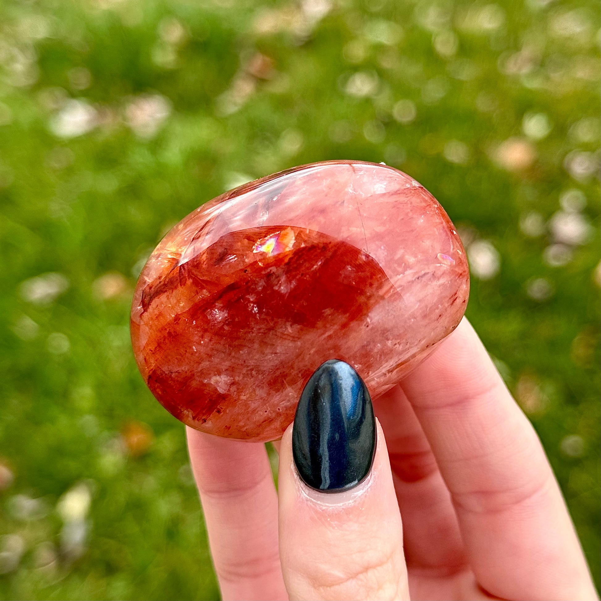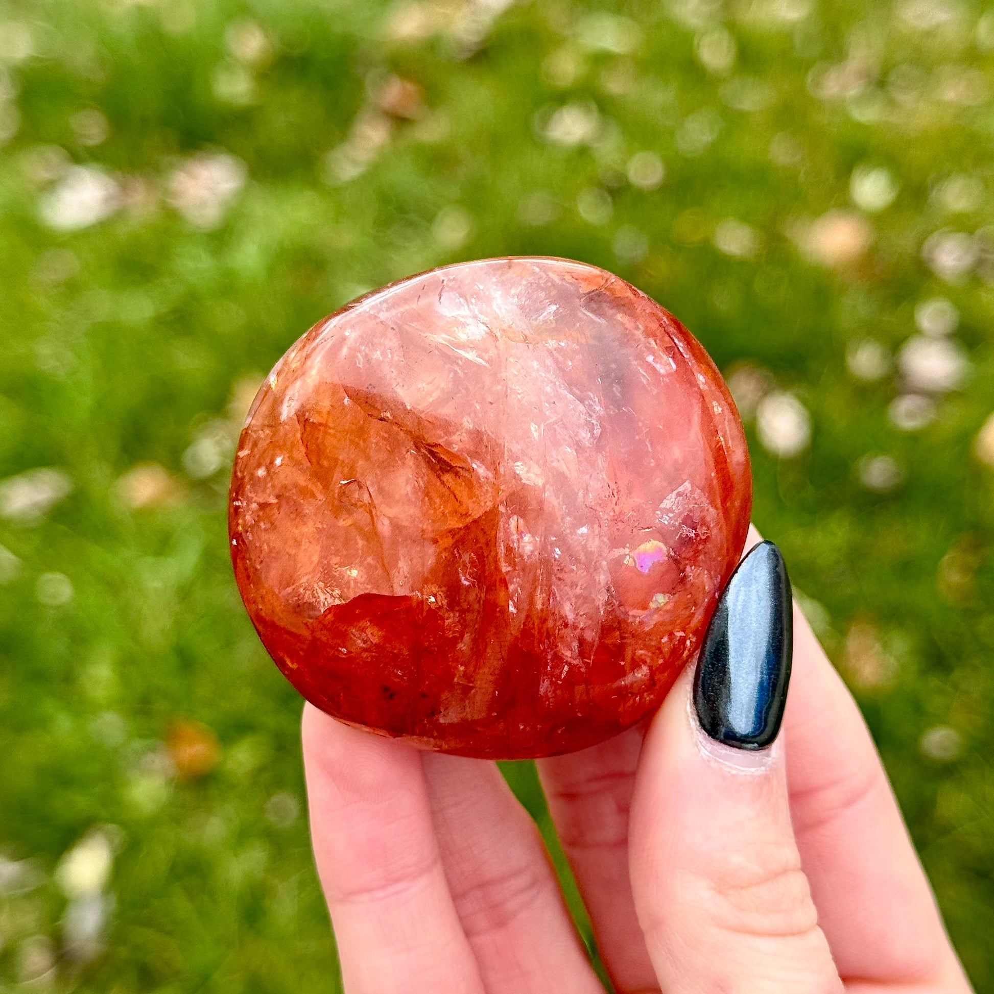 Check out these Fire Quartz Palm Stones with their beautiful color and secret rainbows tucked inside. They make for a stunning addition to any collection (and who doesn't love rainbows?!)