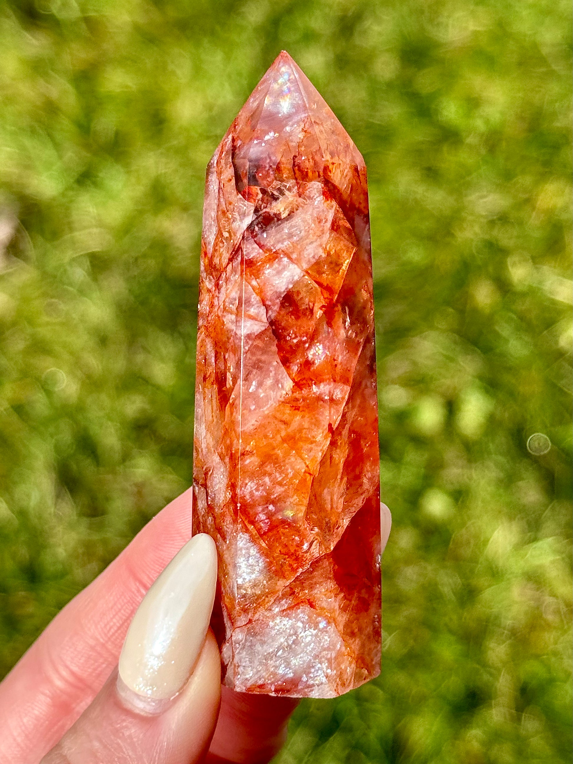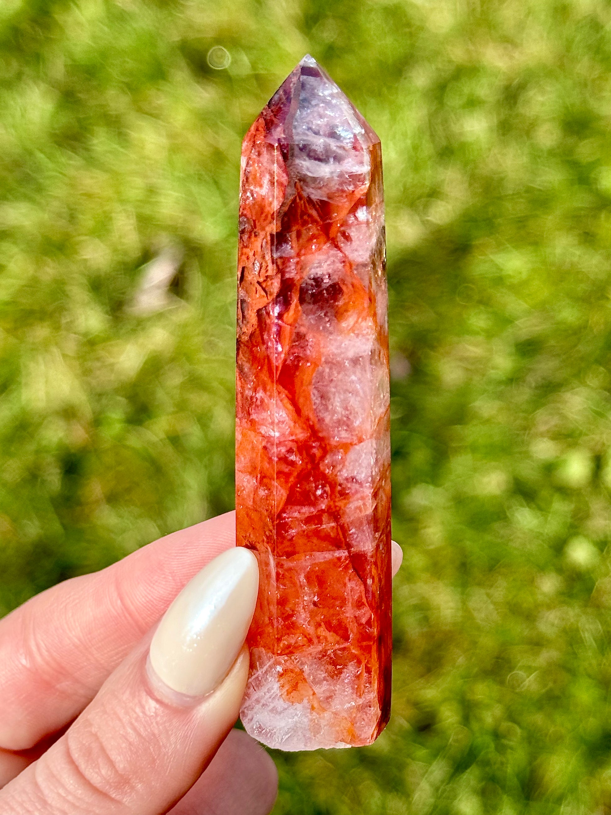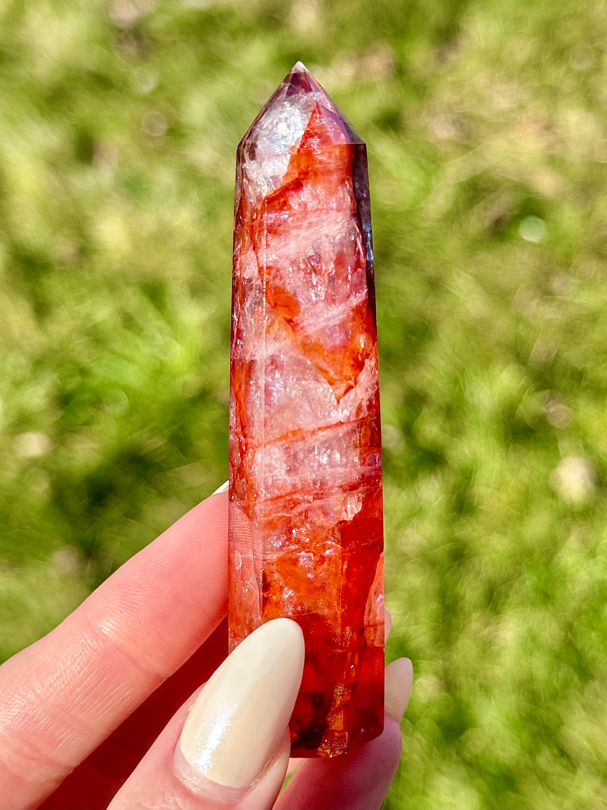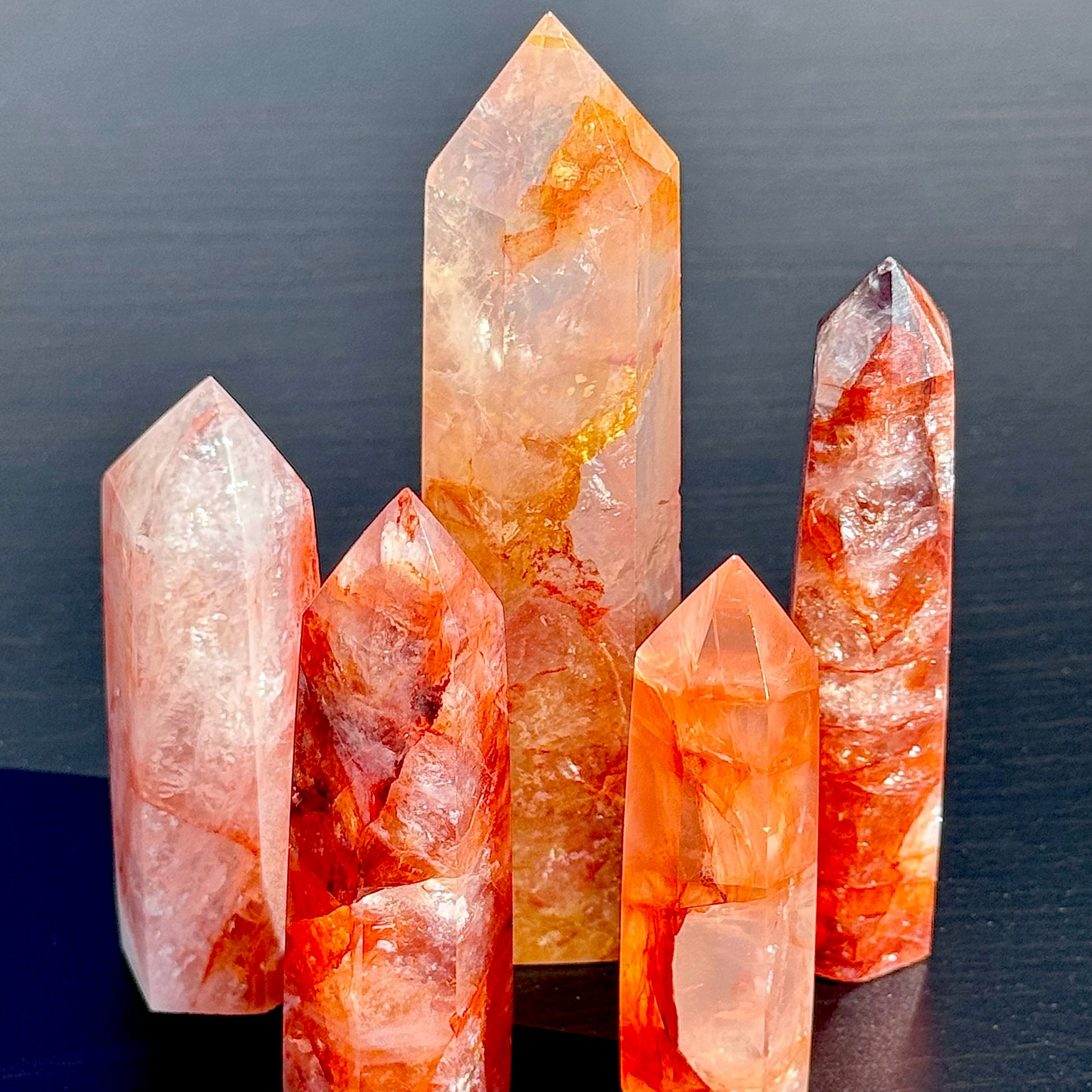 Our Fire Quartz Towers are offered in various shades of red and orange…some with hidden rainbows! The heights of the towers range from 2 3/4" to 4 1/2" tall.