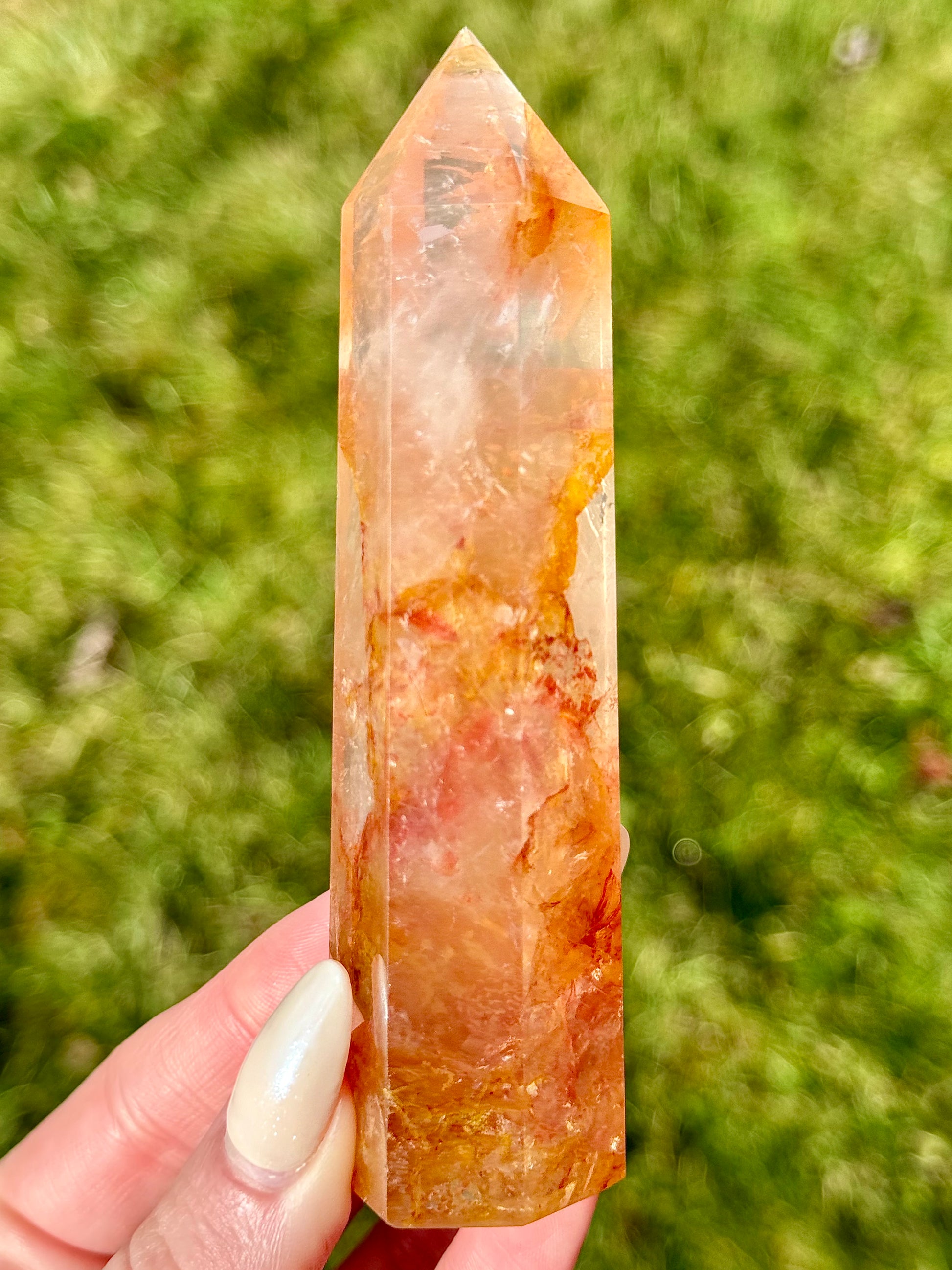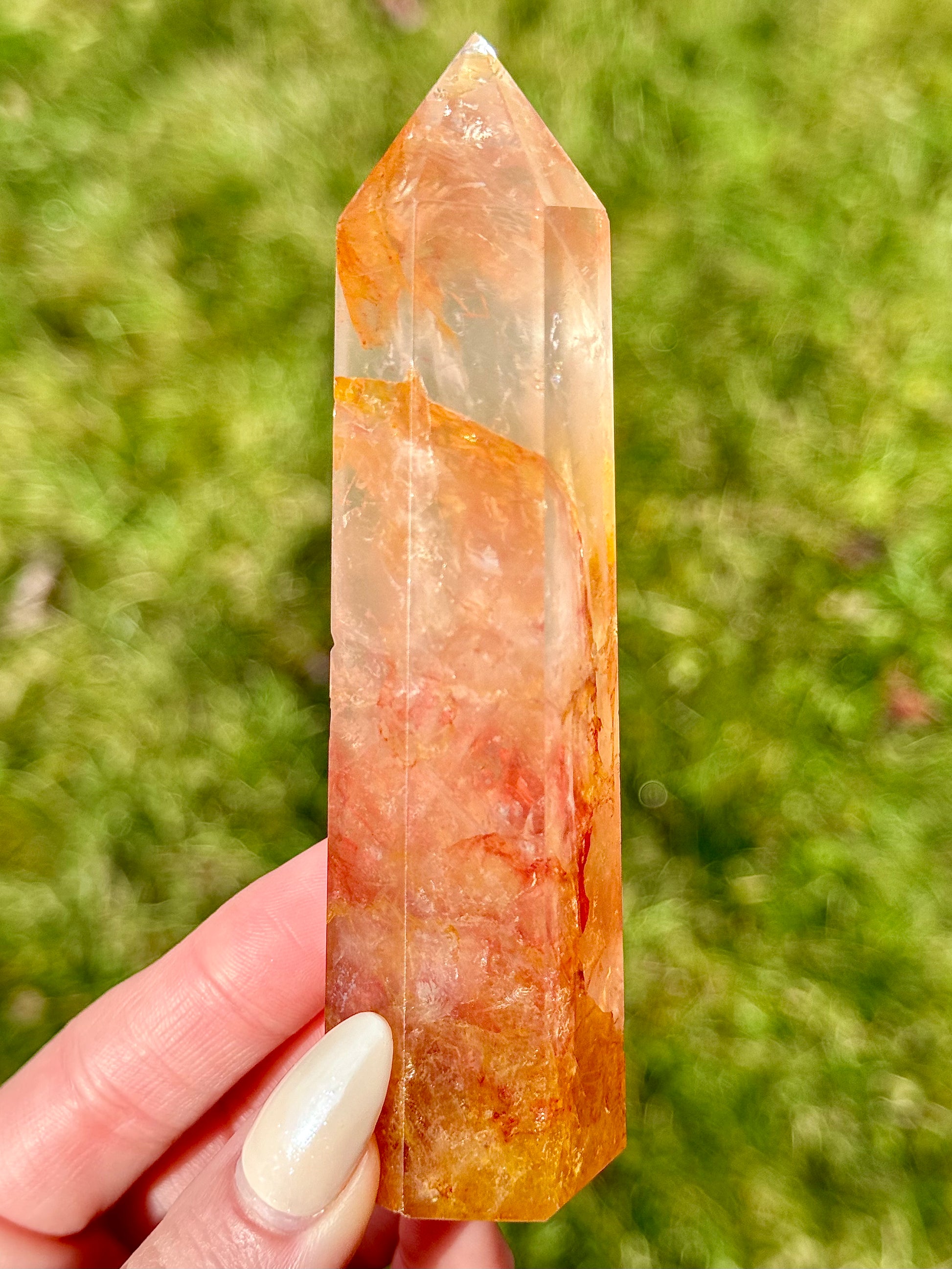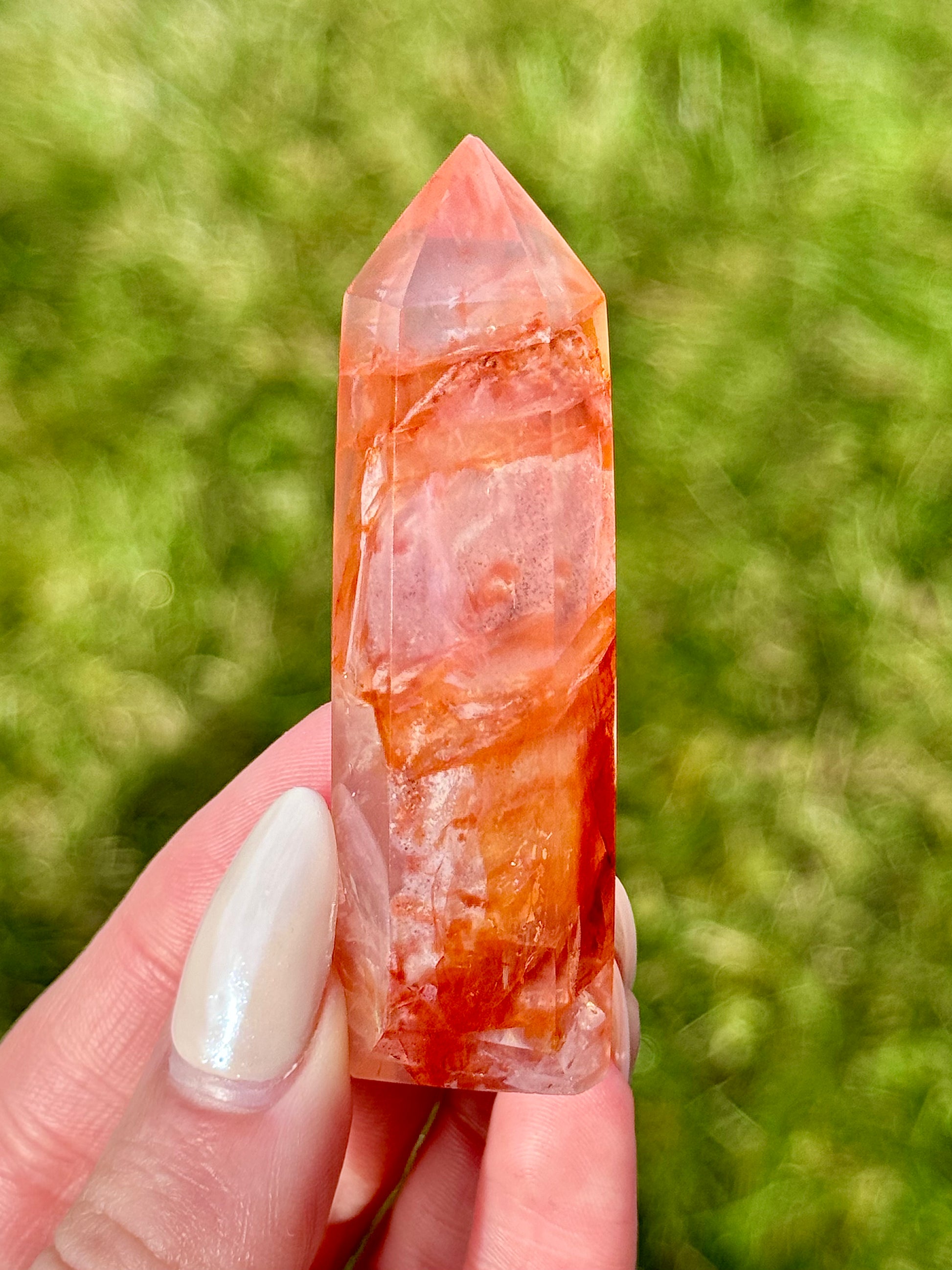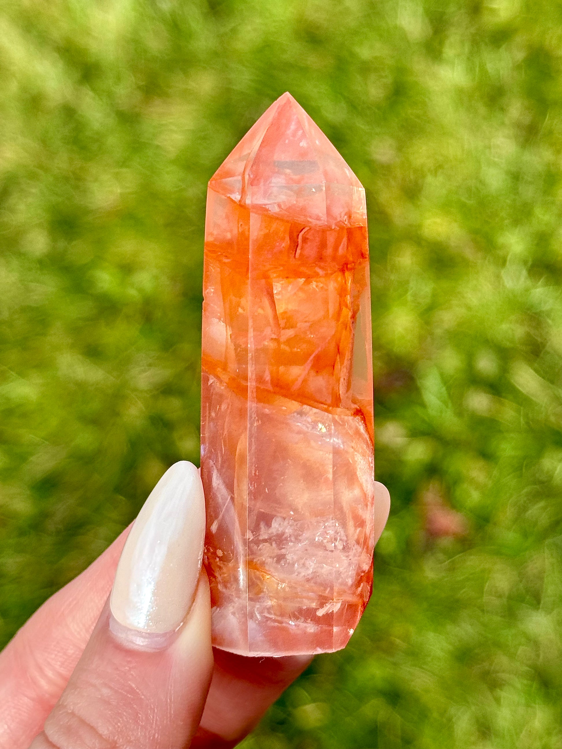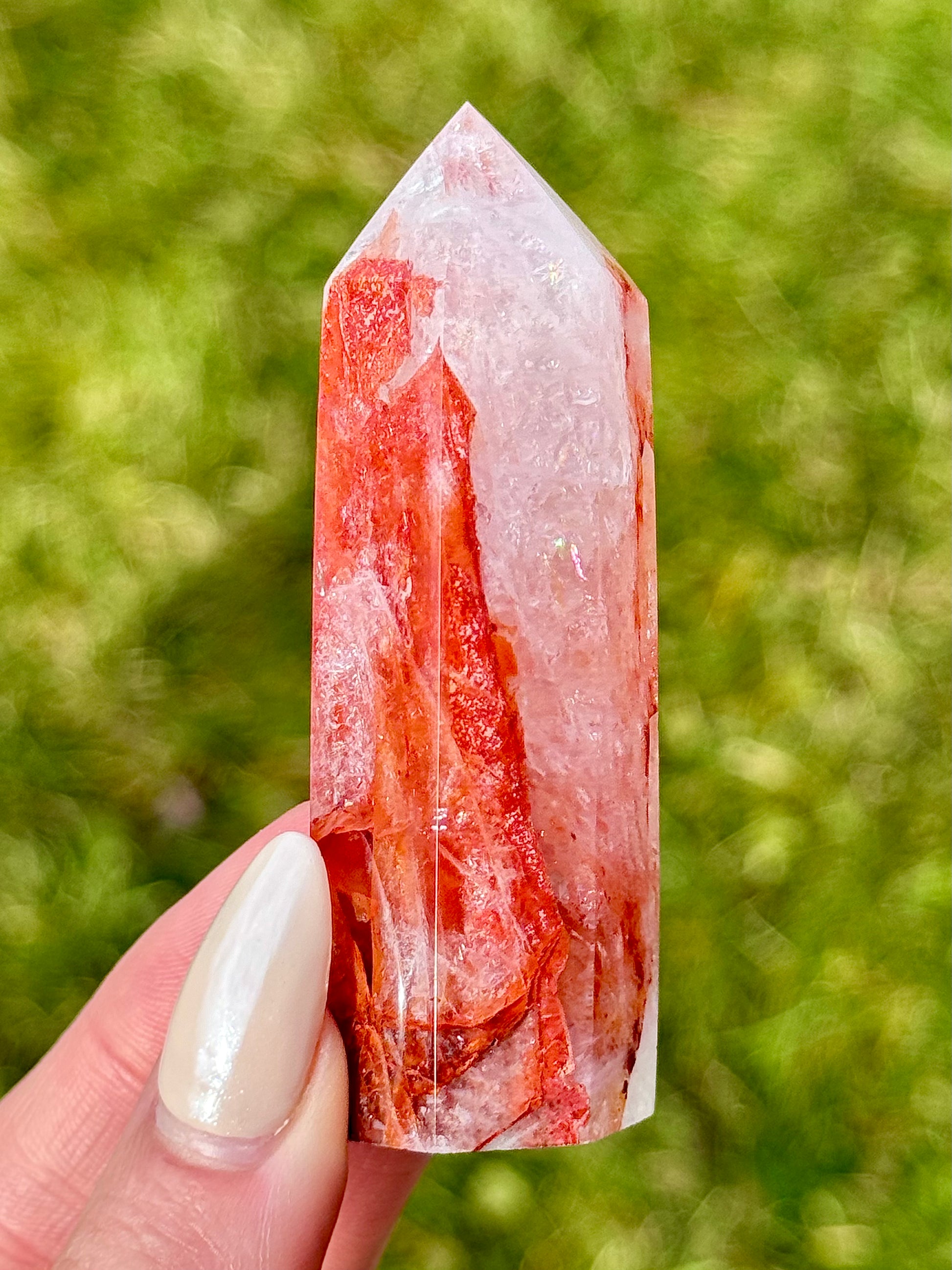 Our Fire Quartz Towers are offered in various shades of red and orange…some with hidden rainbows! The heights of the towers range from 2 3/4" to 4 1/2" tall.