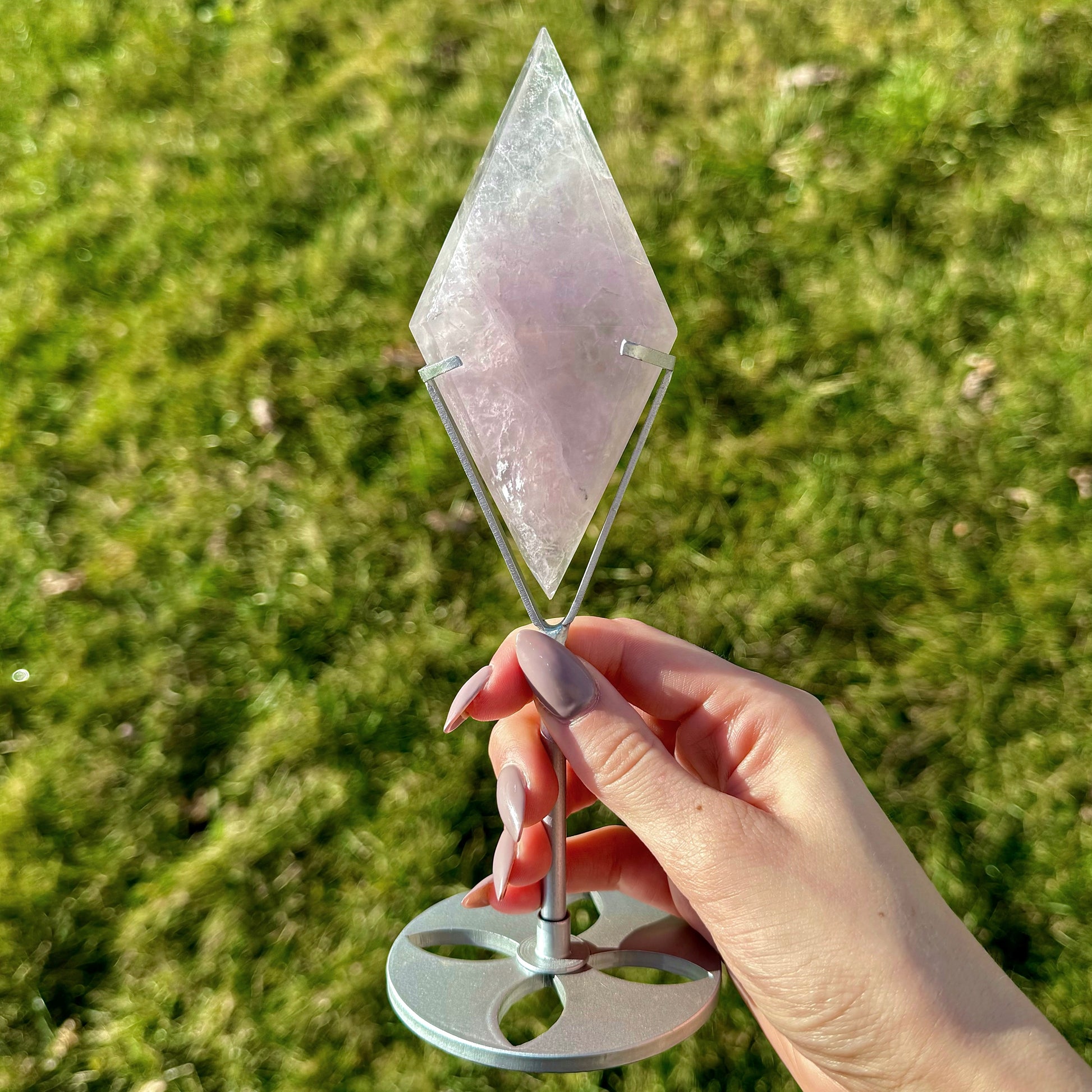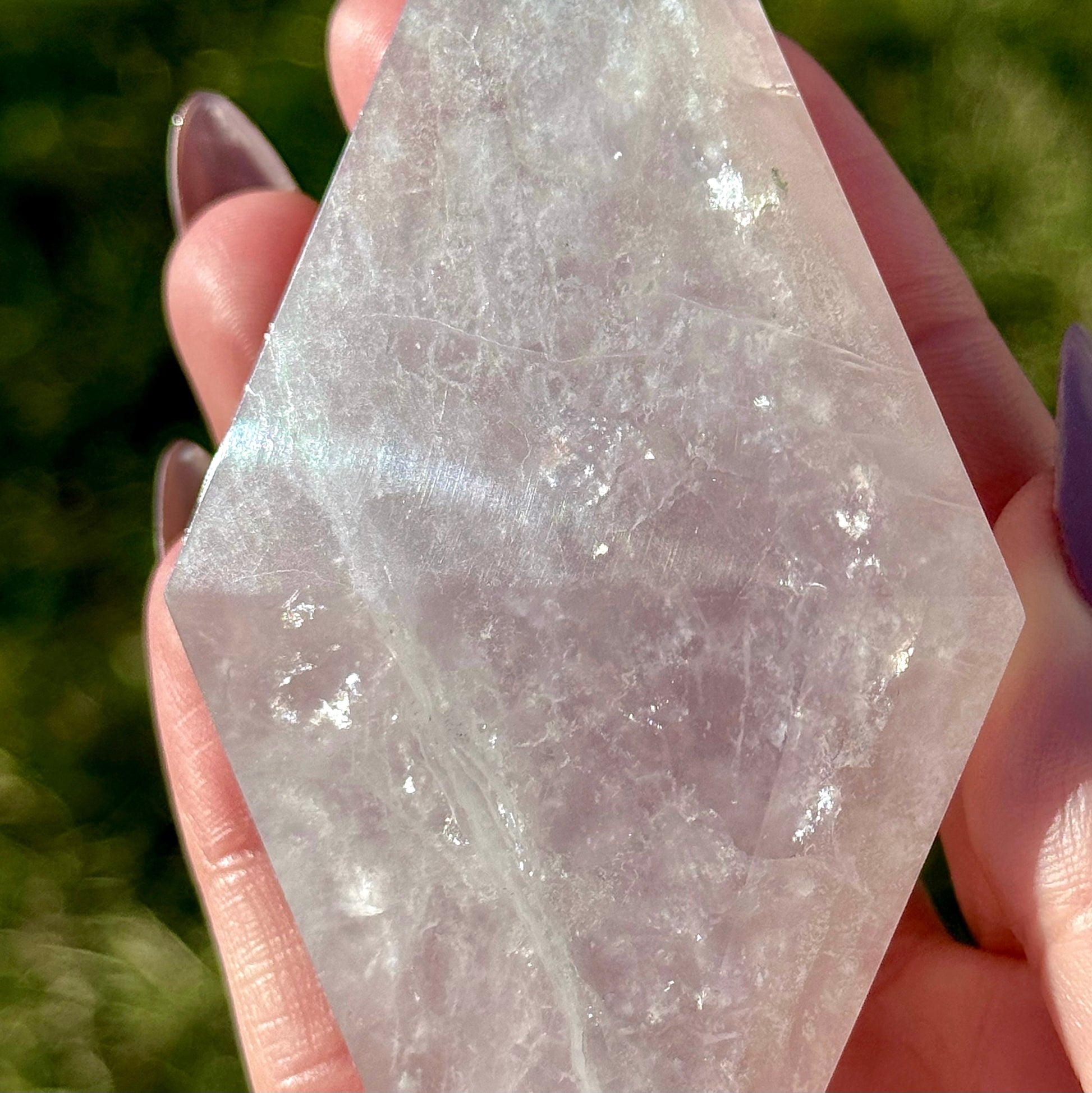 Make a statement with our Fluorite Diamond! Standing at 5” tall, this piece carved to perfection and full of rainbow shimmer.
