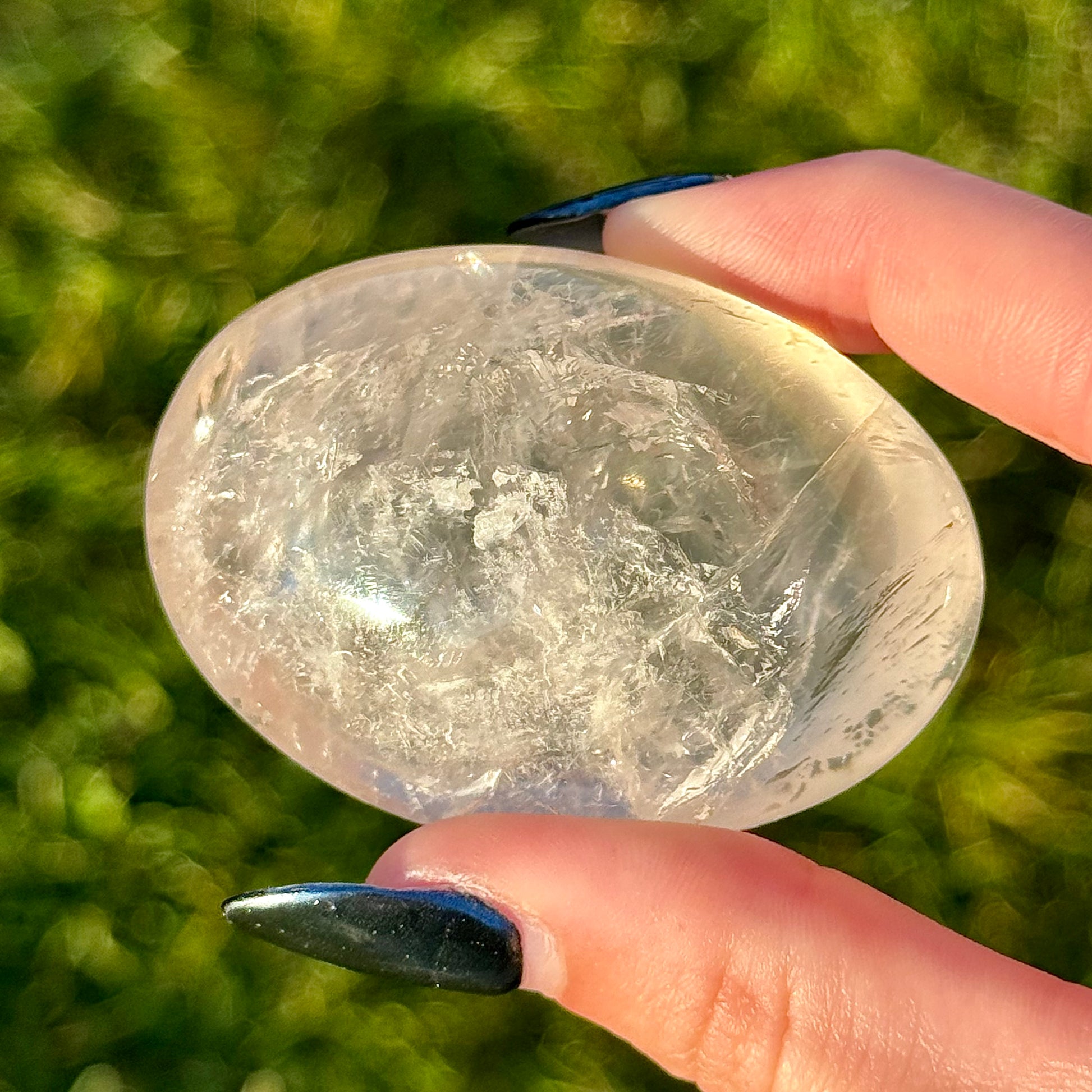 These Girasol Quartz Palm Stones display stunning clarity in a variety of different sizes. Choose your favorite one today!