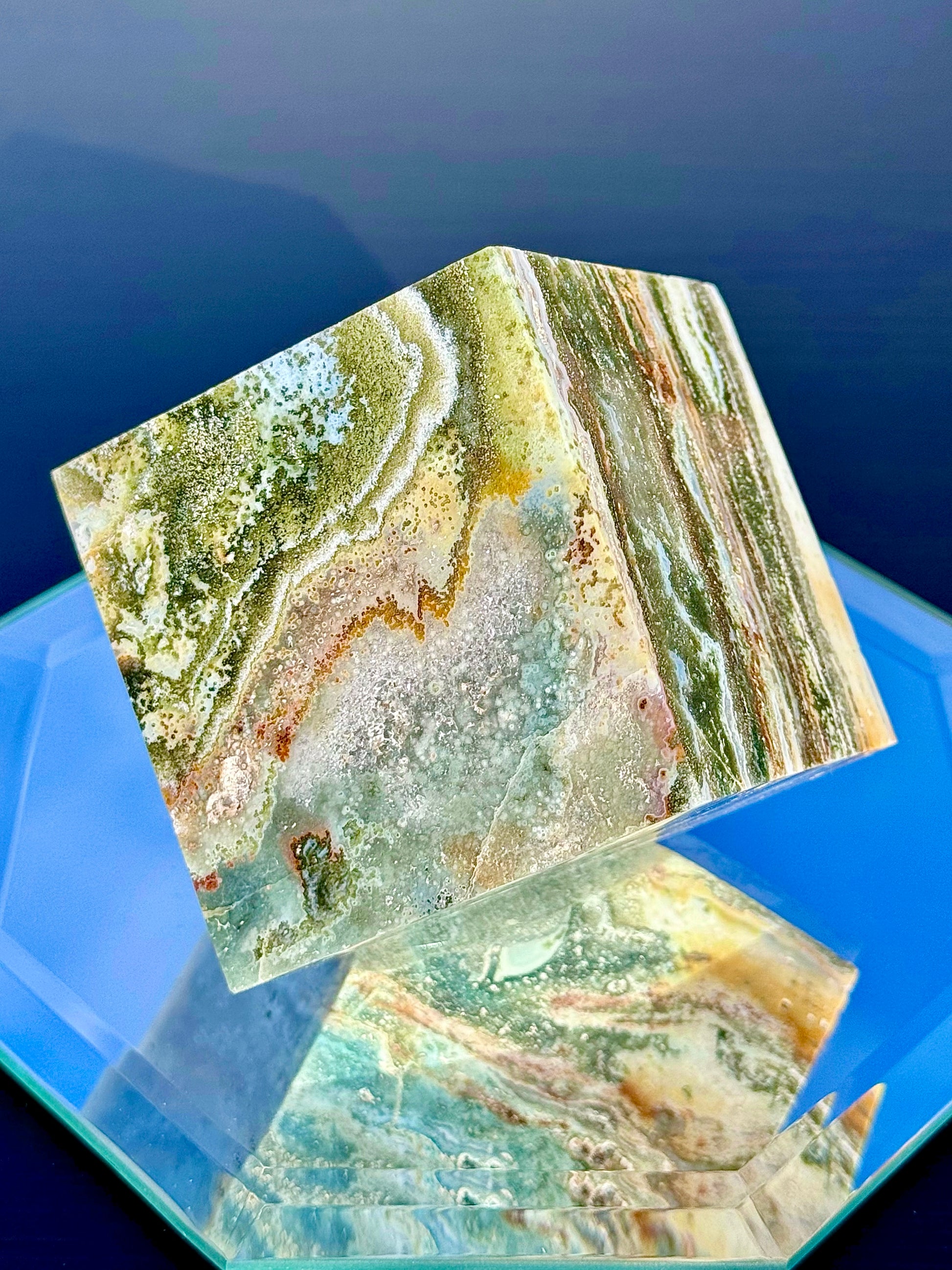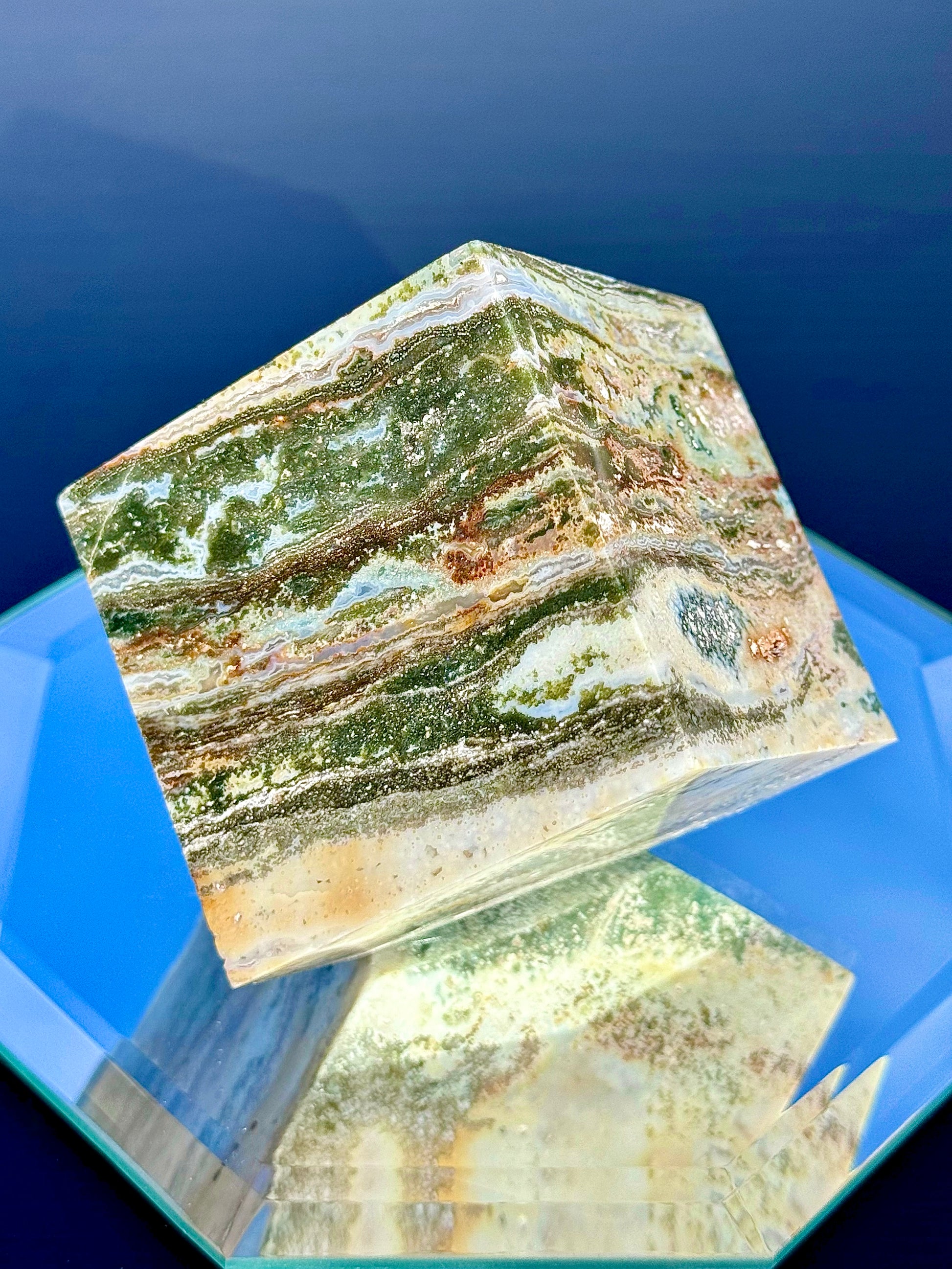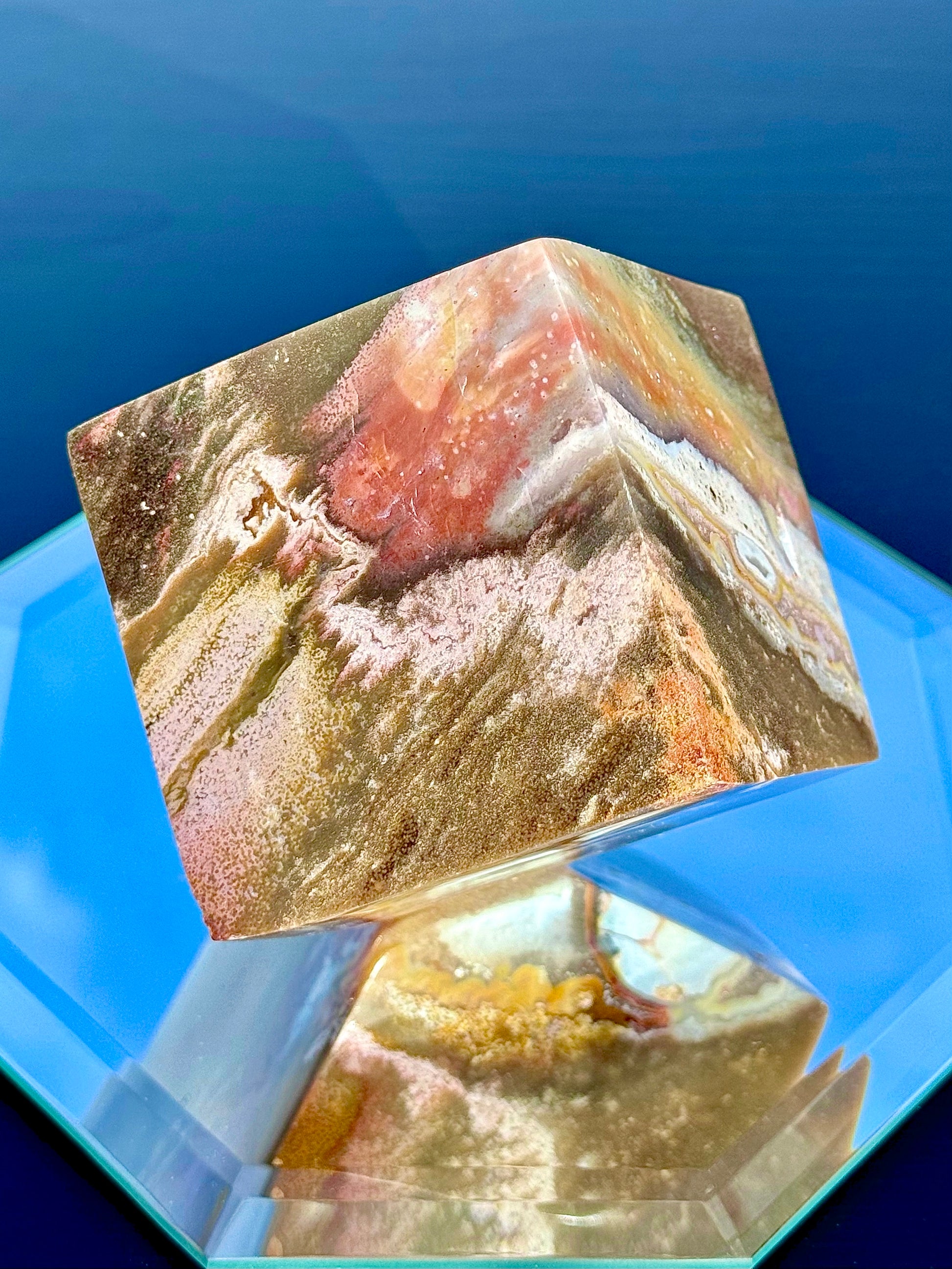 Experience a unique blend of color and patterns with our Large Sea Jasper Cubes! These cubes weigh between 1 to 2 lb. Style 78 has cube faces measuring about 2 1/4” long, and all other styles measure 2 1/2” long. All of these cubes stand perfectly.