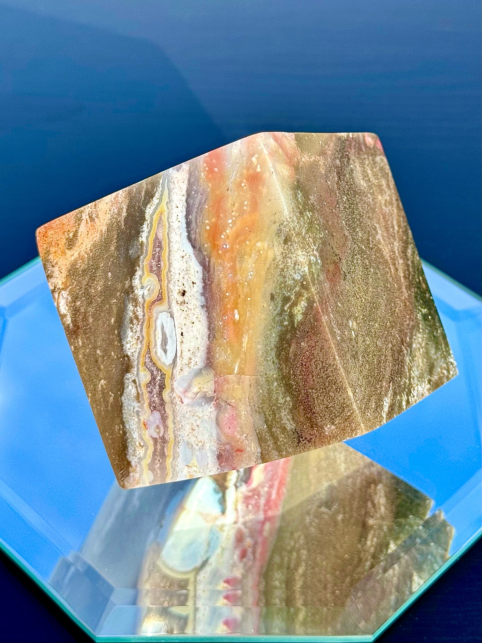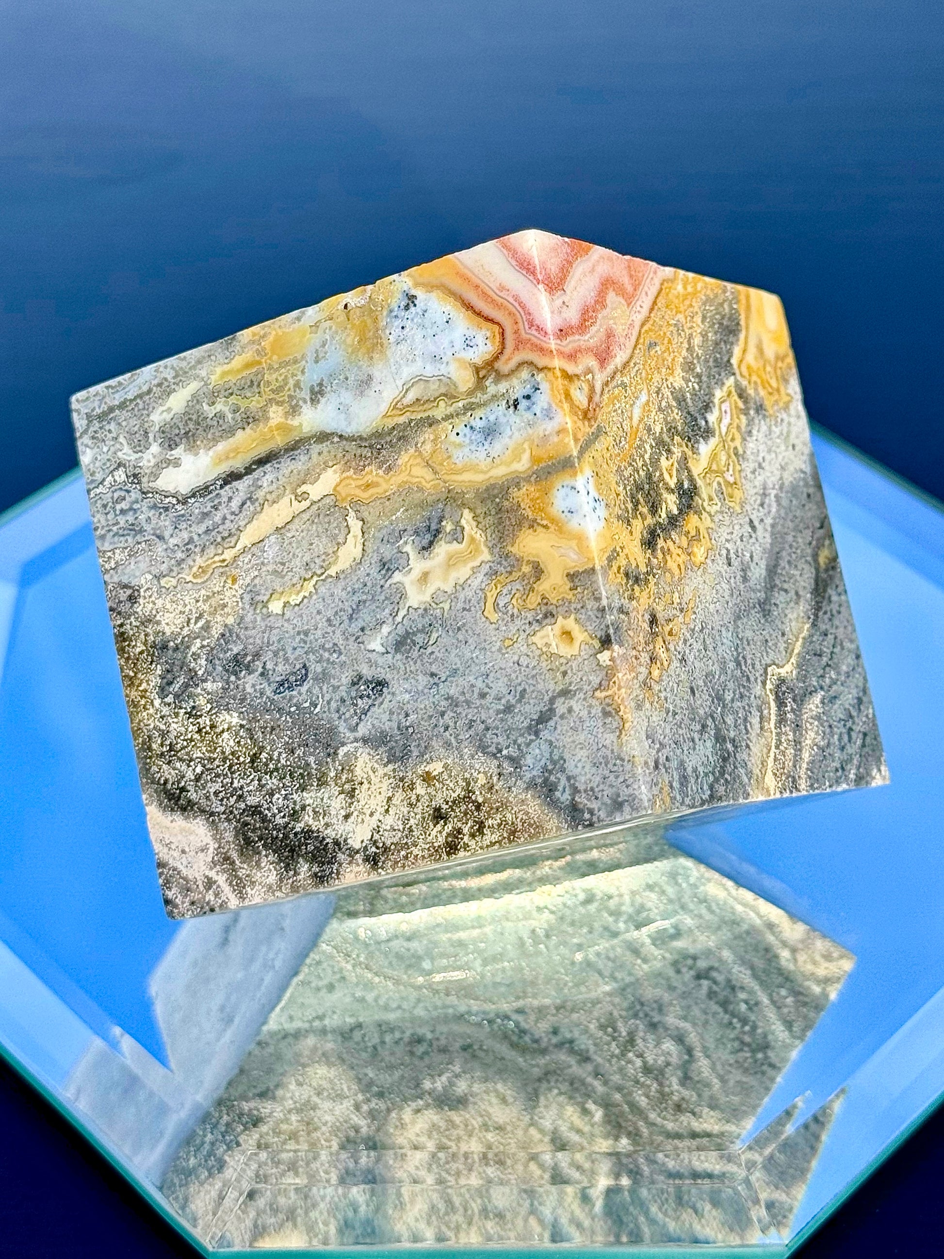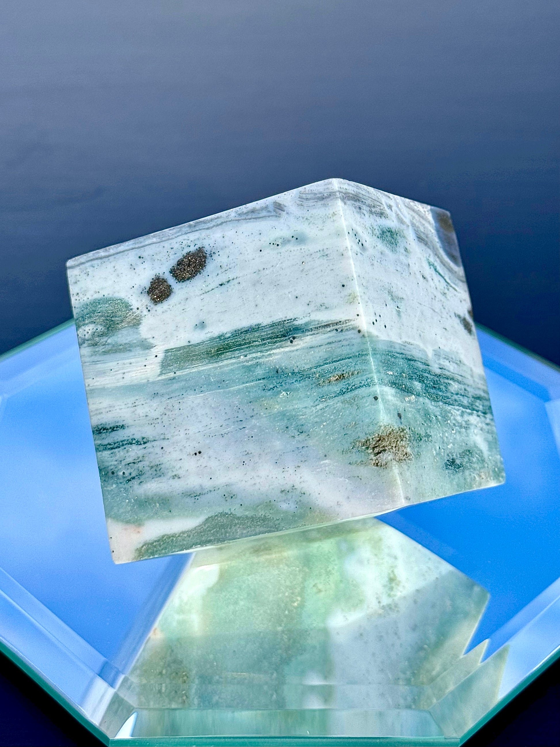 Experience a unique blend of color and patterns with our Large Sea Jasper Cubes! These cubes weigh between 1 to 2 lb. Style 78 has cube faces measuring about 2 1/4” long, and all other styles measure 2 1/2” long. All of these cubes stand perfectly.