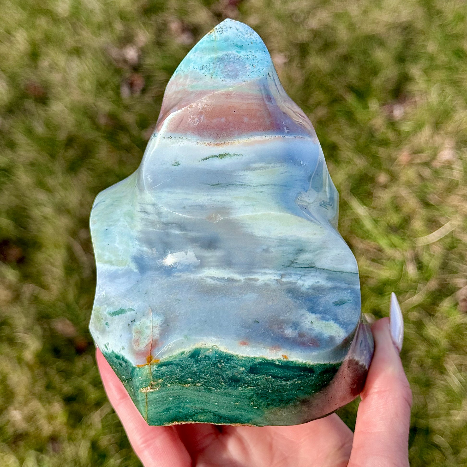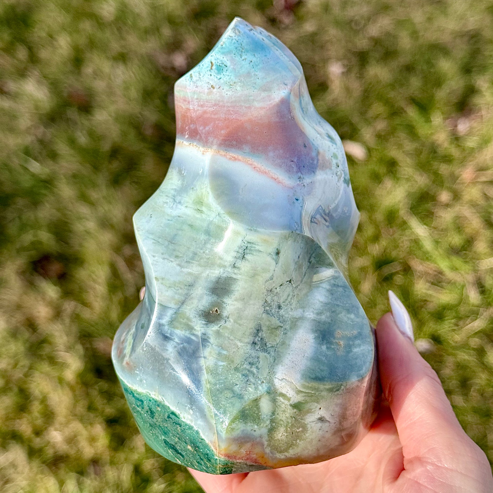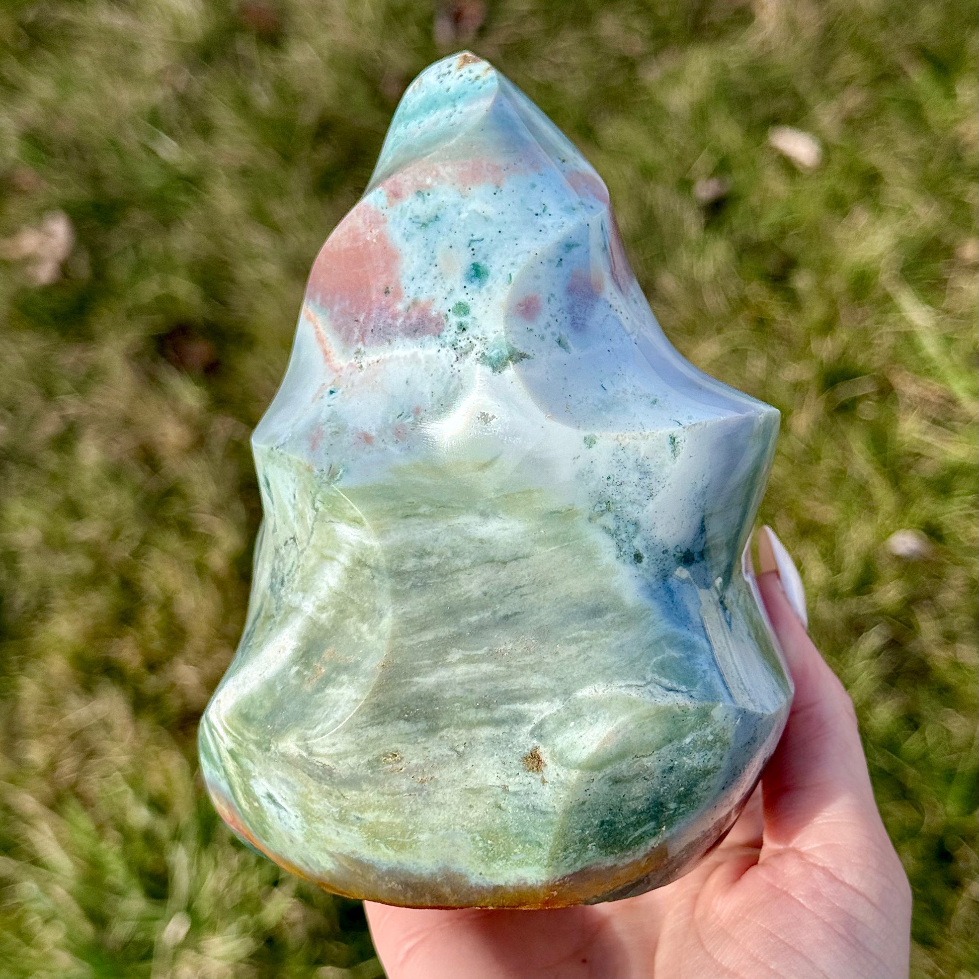 Get ready to add an amazing piece to your collection with our Large Sea Jasper Flame! This huge piece is 5" tall and over 2 lb. You’ll love the adorable pastel colors and unique personality it brings.