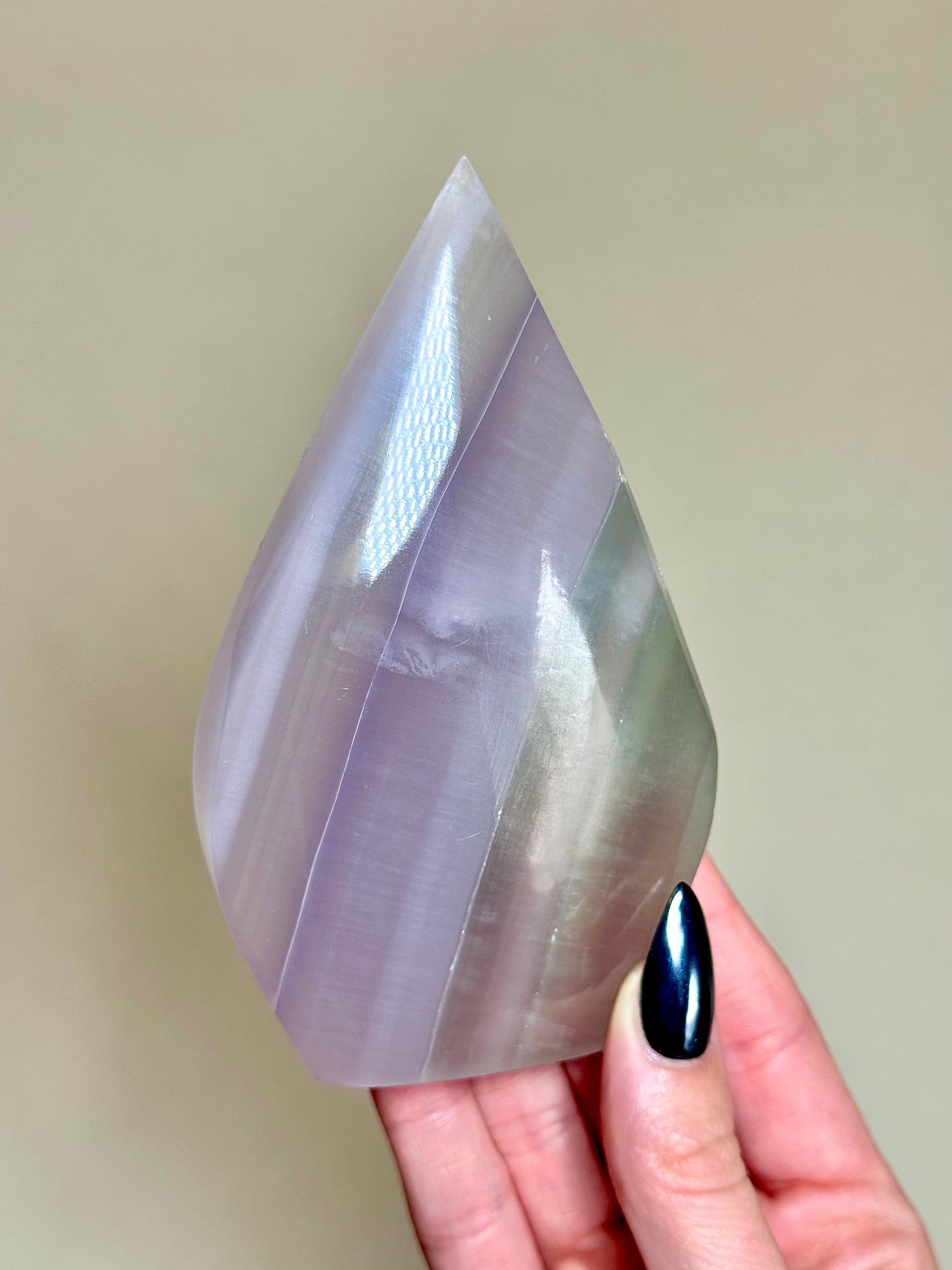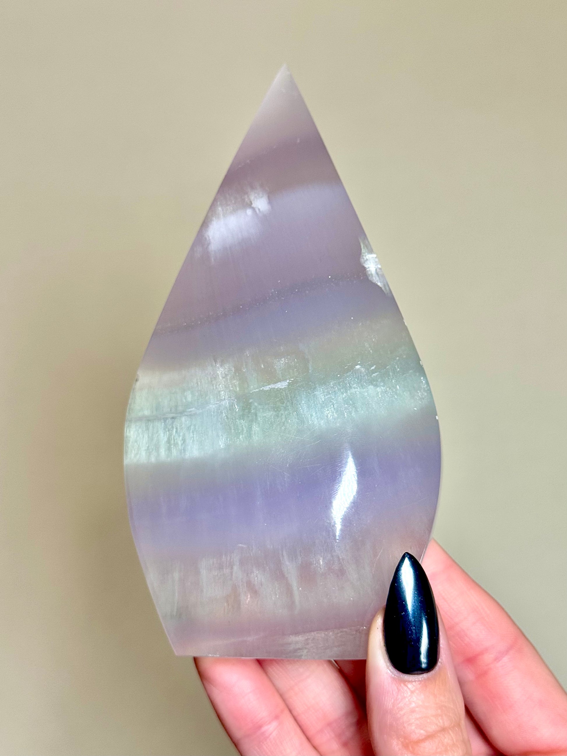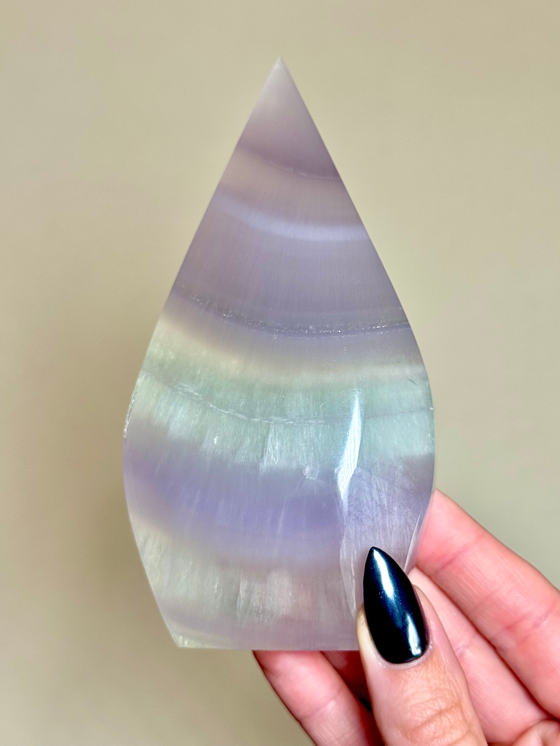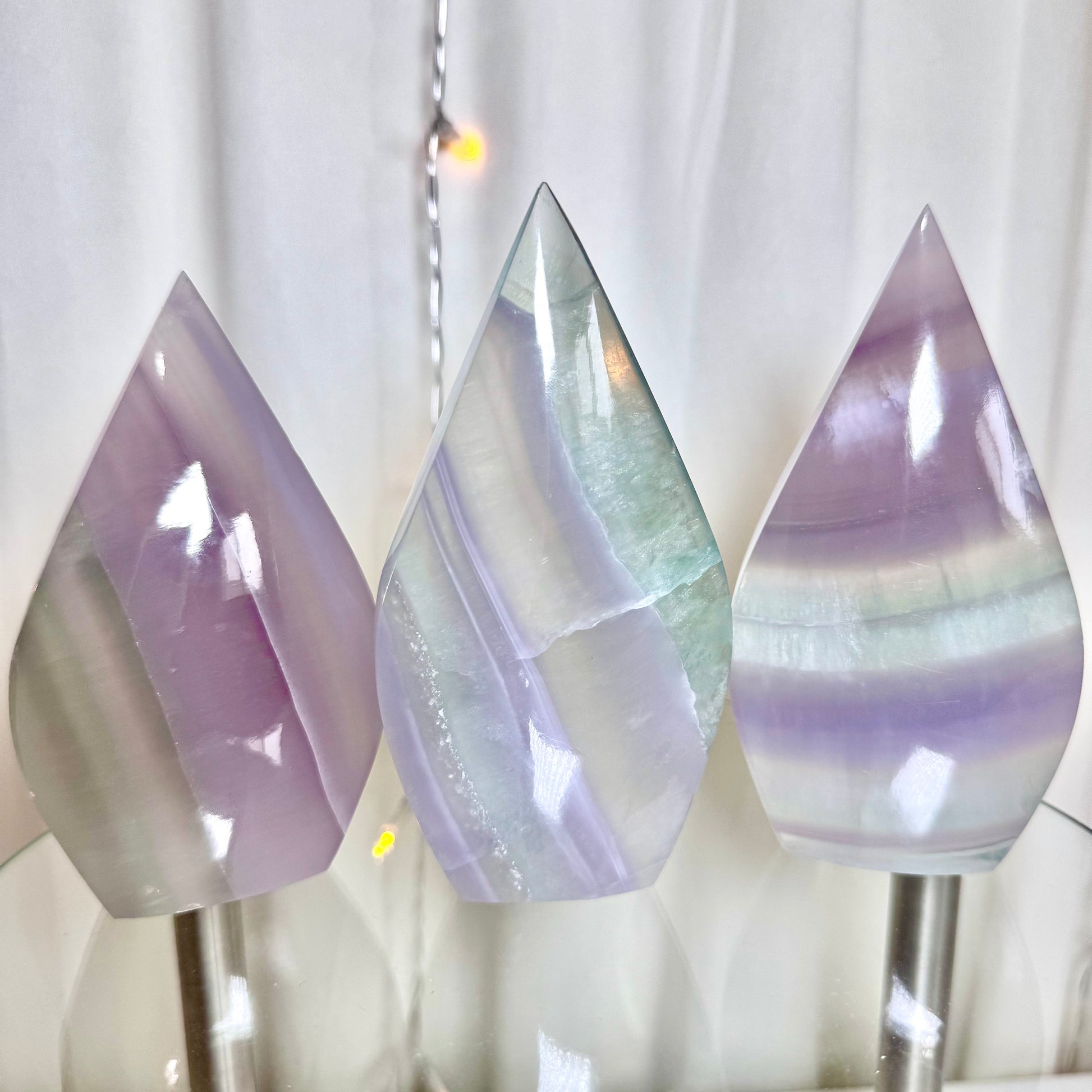 These Lavender Fluorite flames are between 4 1/2” to 5” tall.