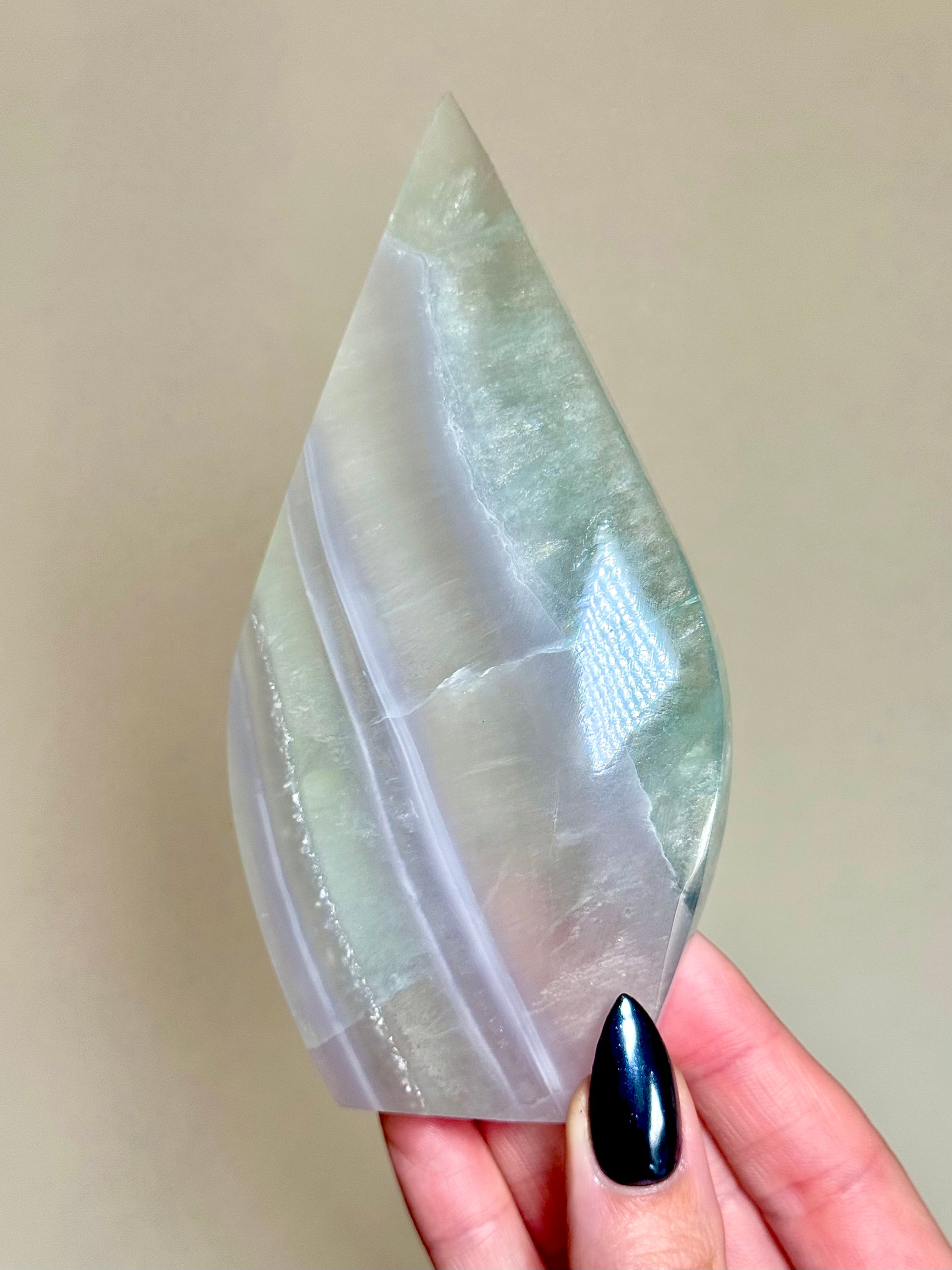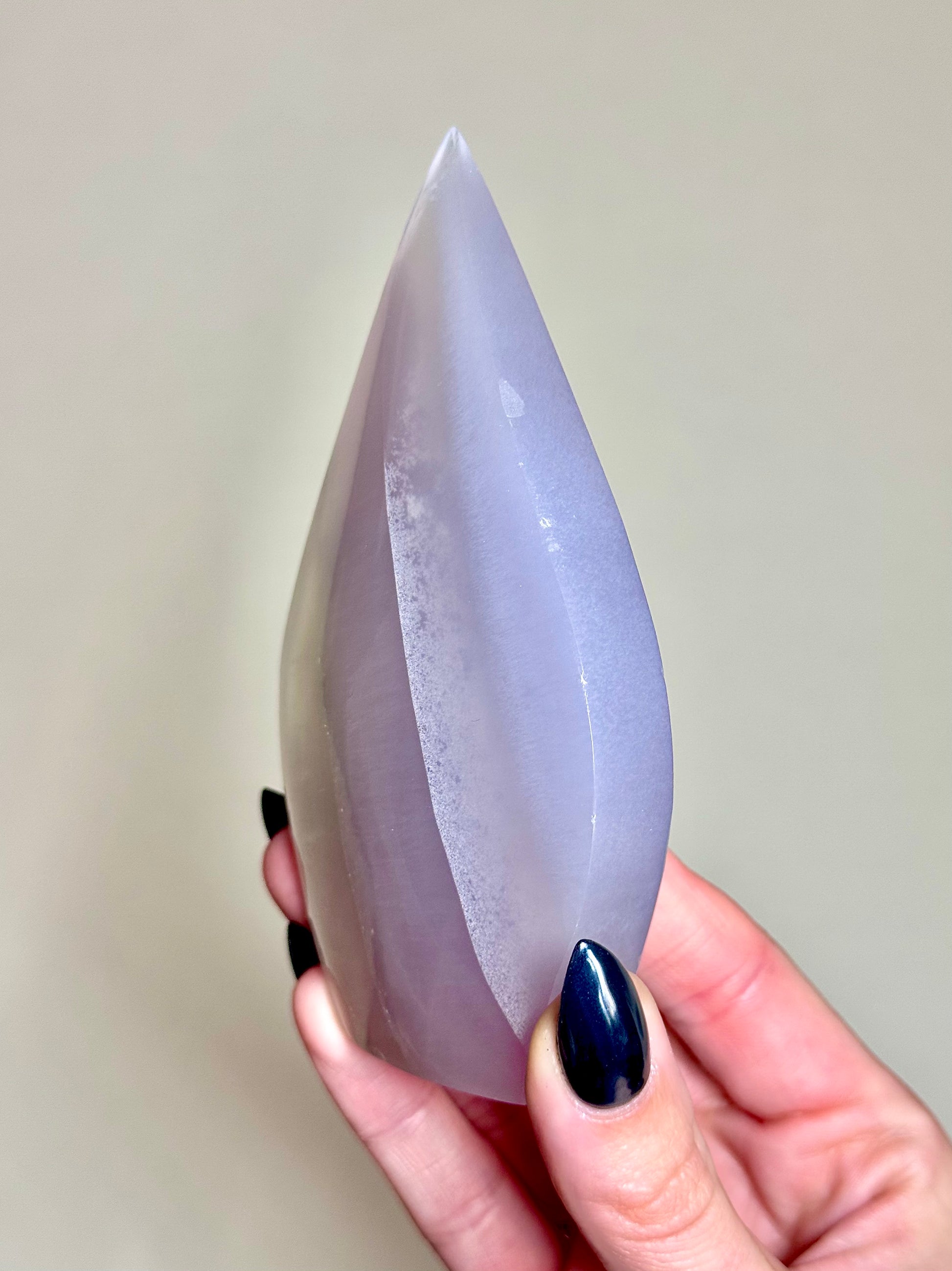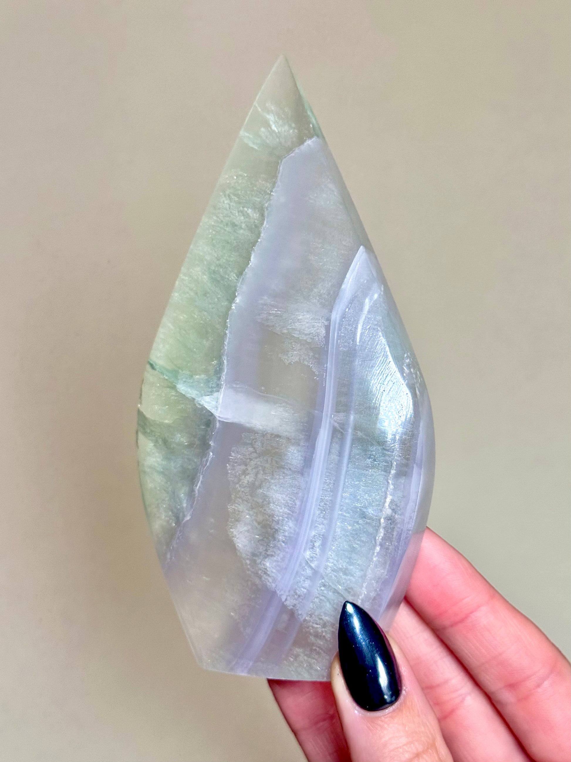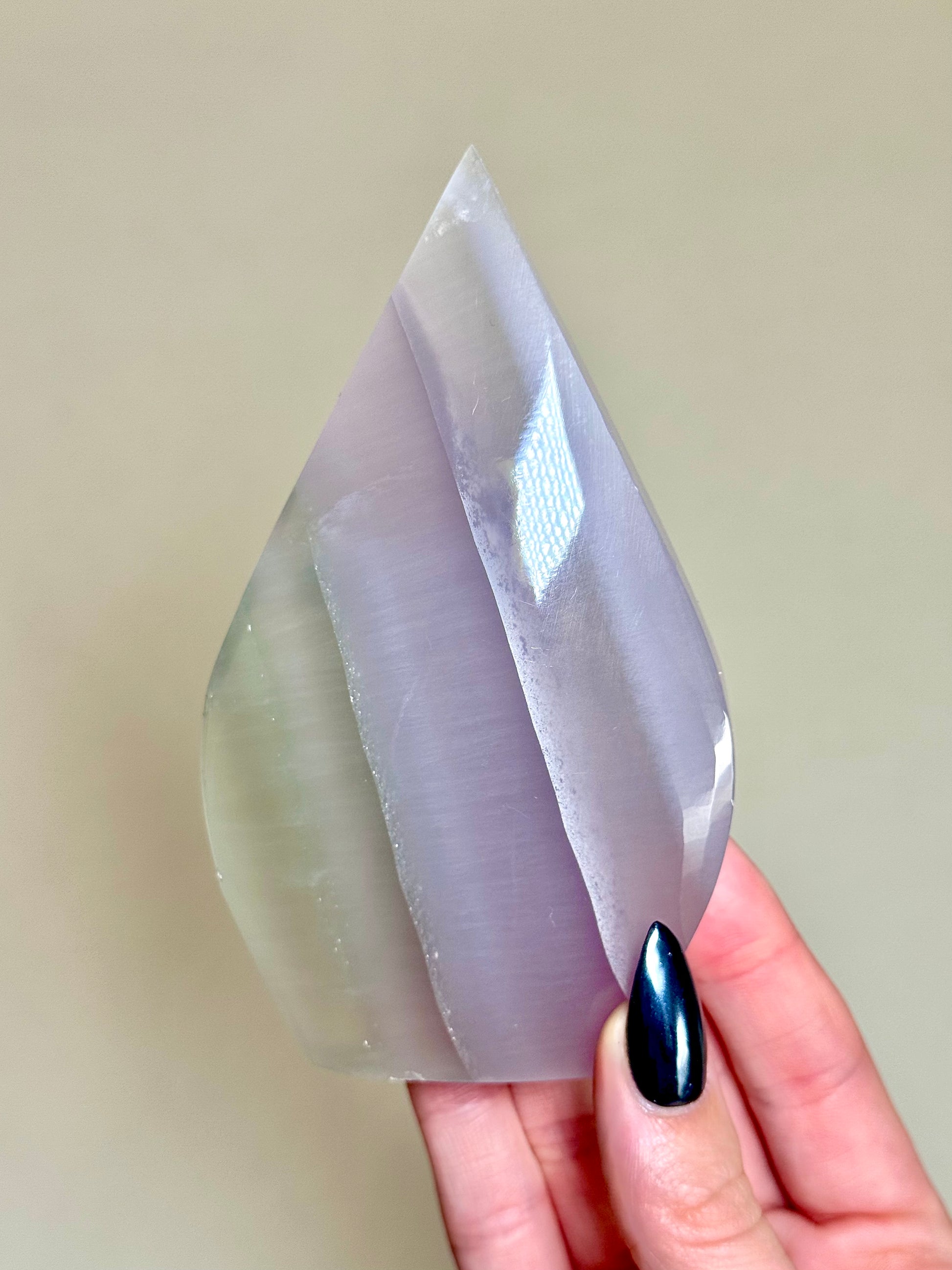 These Lavender Fluorite flames are between 4 1/2” to 5” tall.