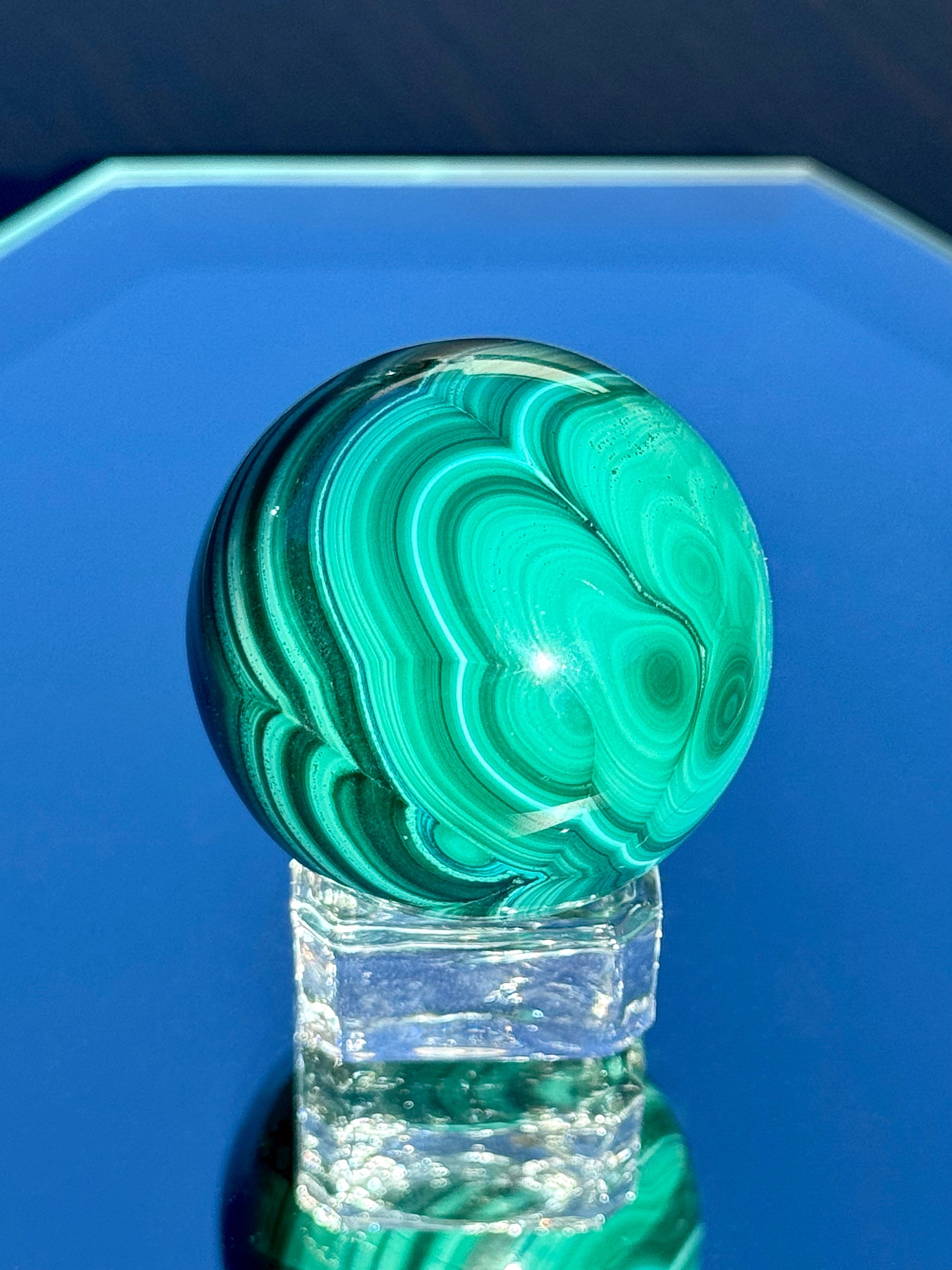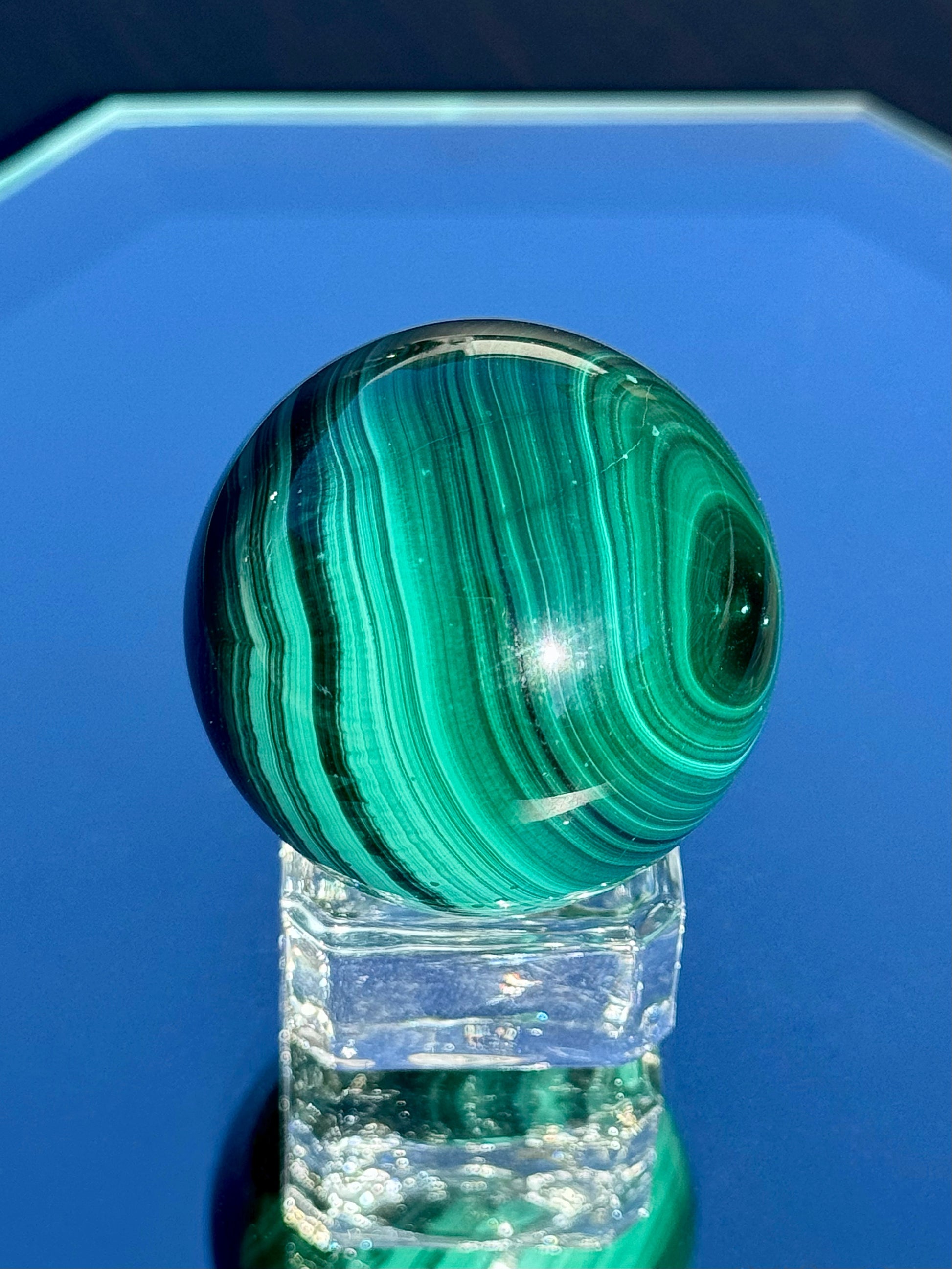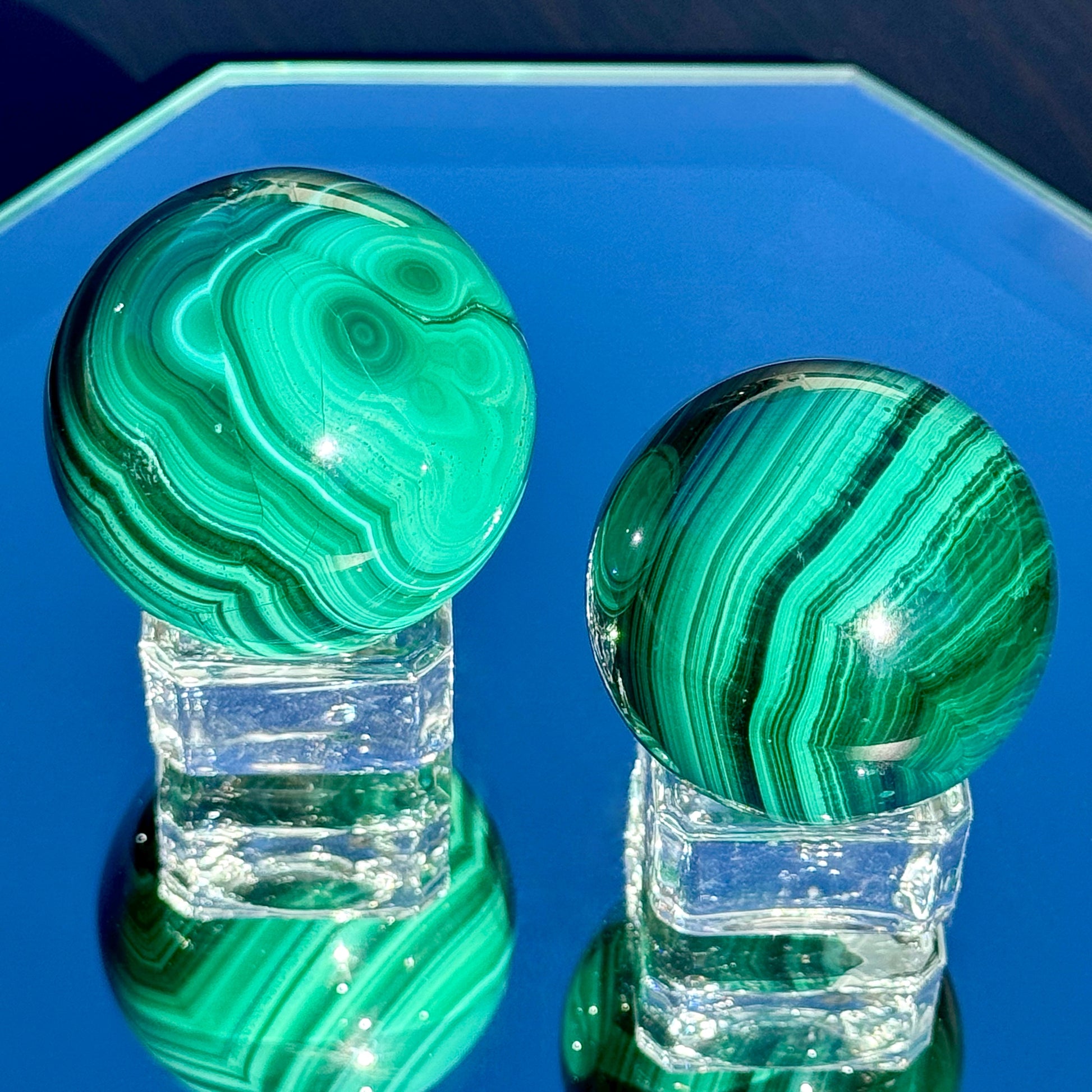 Bring a deep green touch to your space with a Malachite Sphere! These high-quality spheres feature amazing banding, ranging from 36mm to 39mm in diameter.