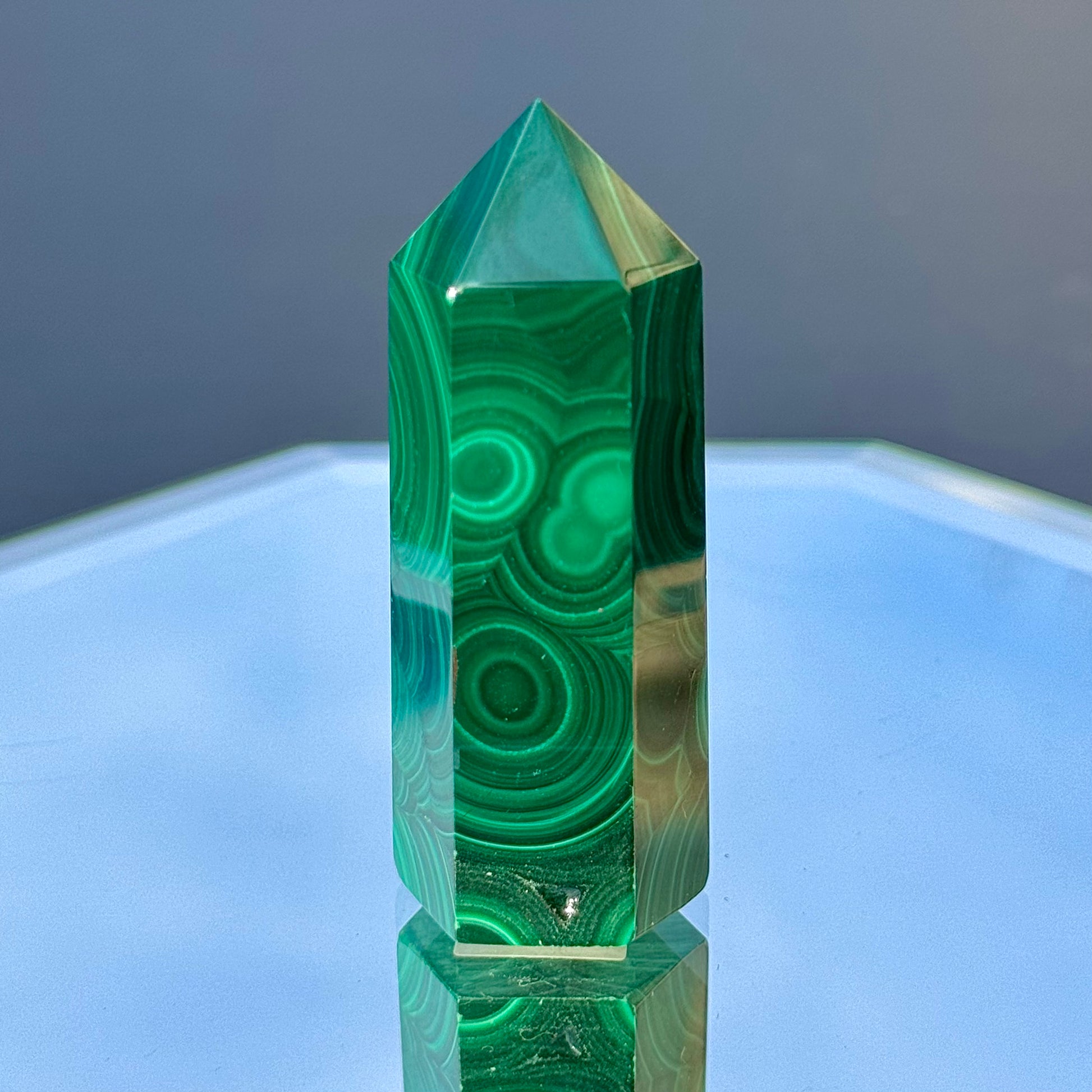 This Malachite Tower is 2 1/2" tall.