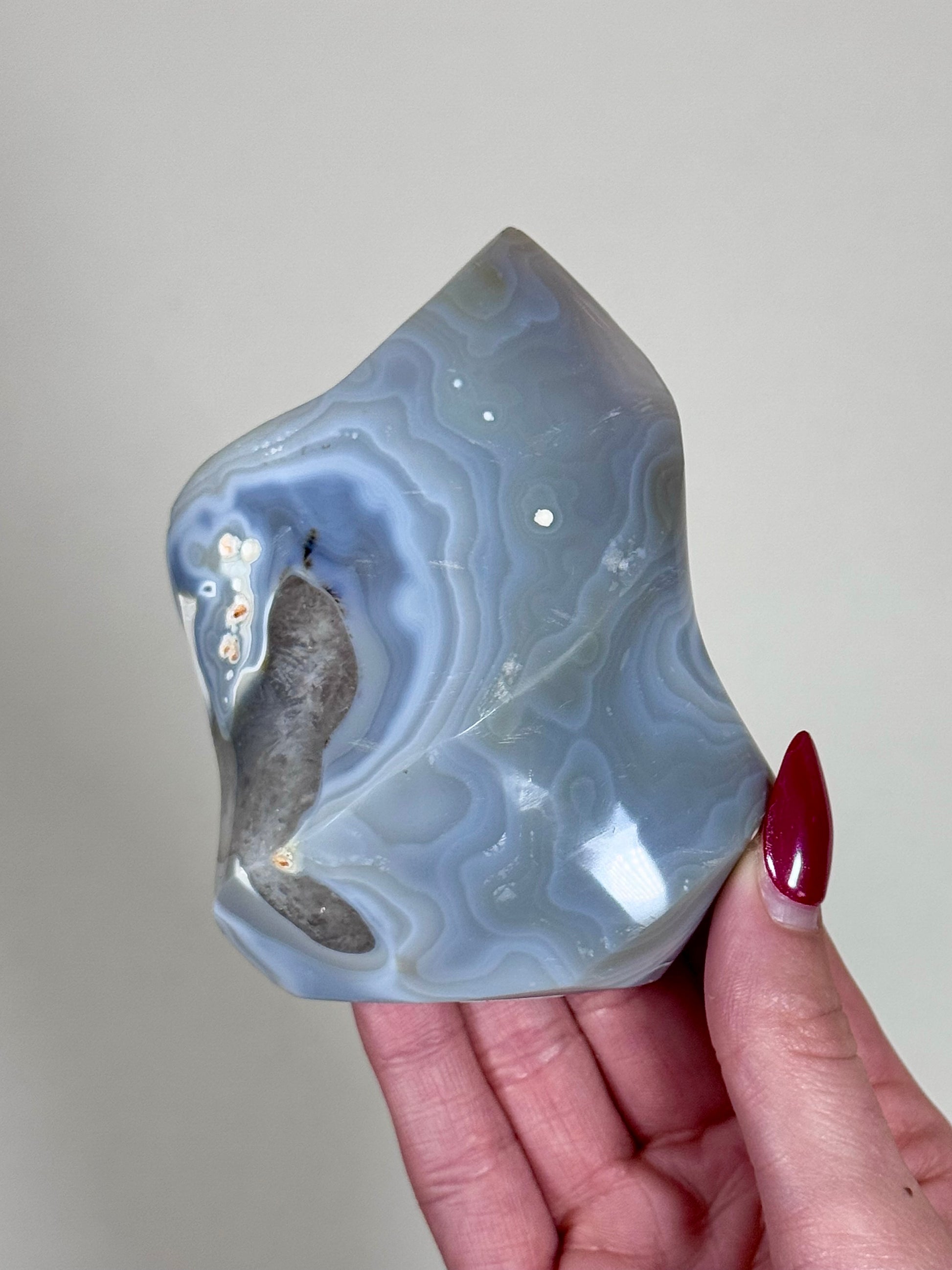These Orca Agate Flames have heights ranging from about 3” to 5” tall.