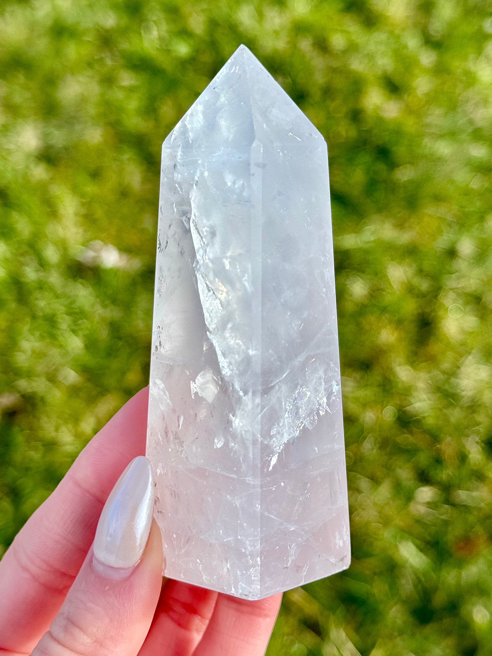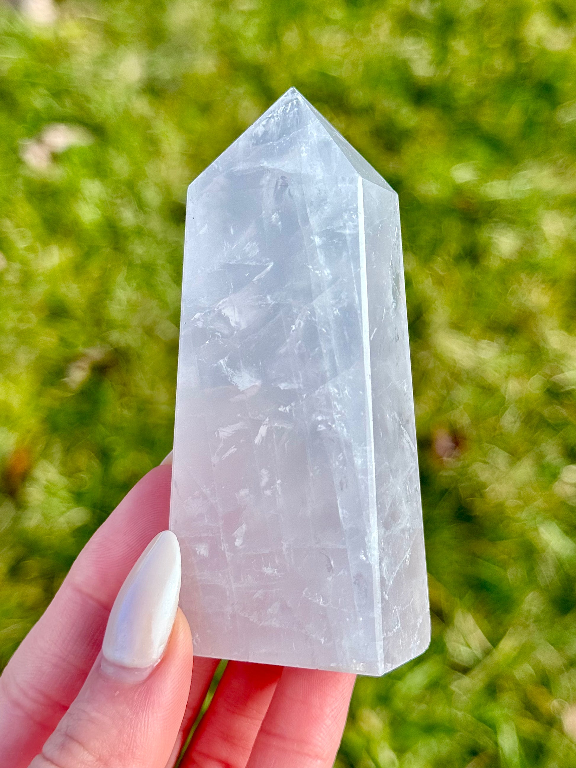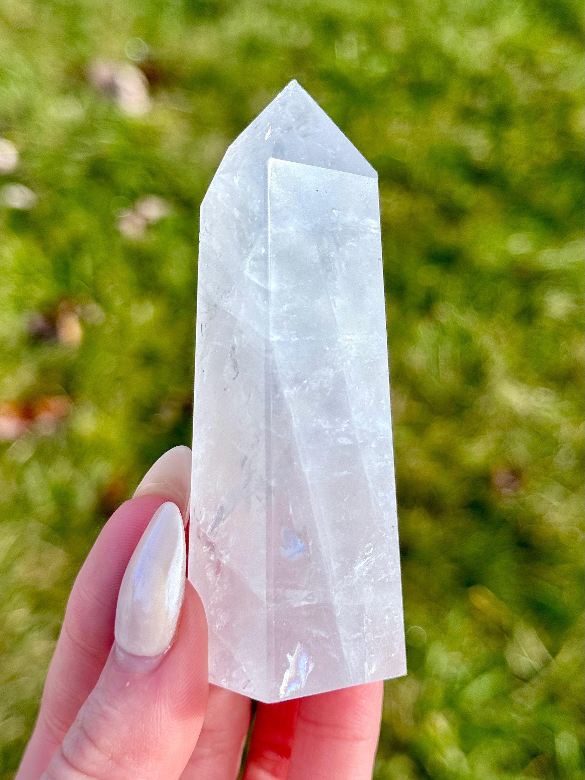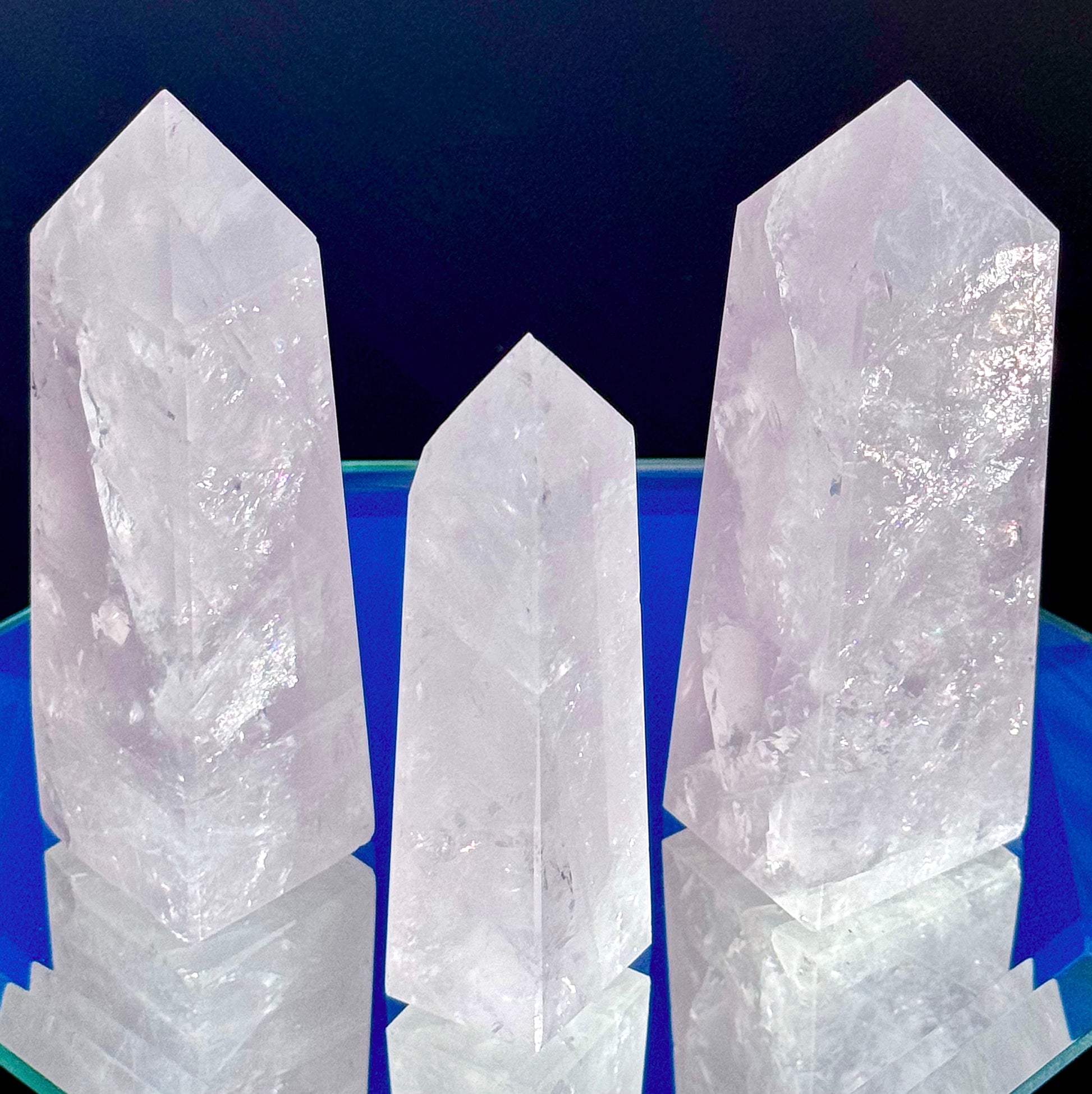 These Periwinkle Quartz Towers will certainly awe with their stunning rainbow shimmer and amazing periwinkle hue. The heights of these towers range from 3 1/4" to 4" tall.