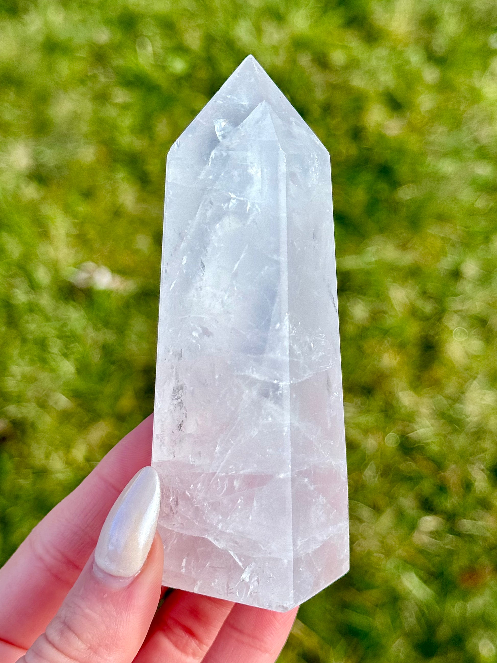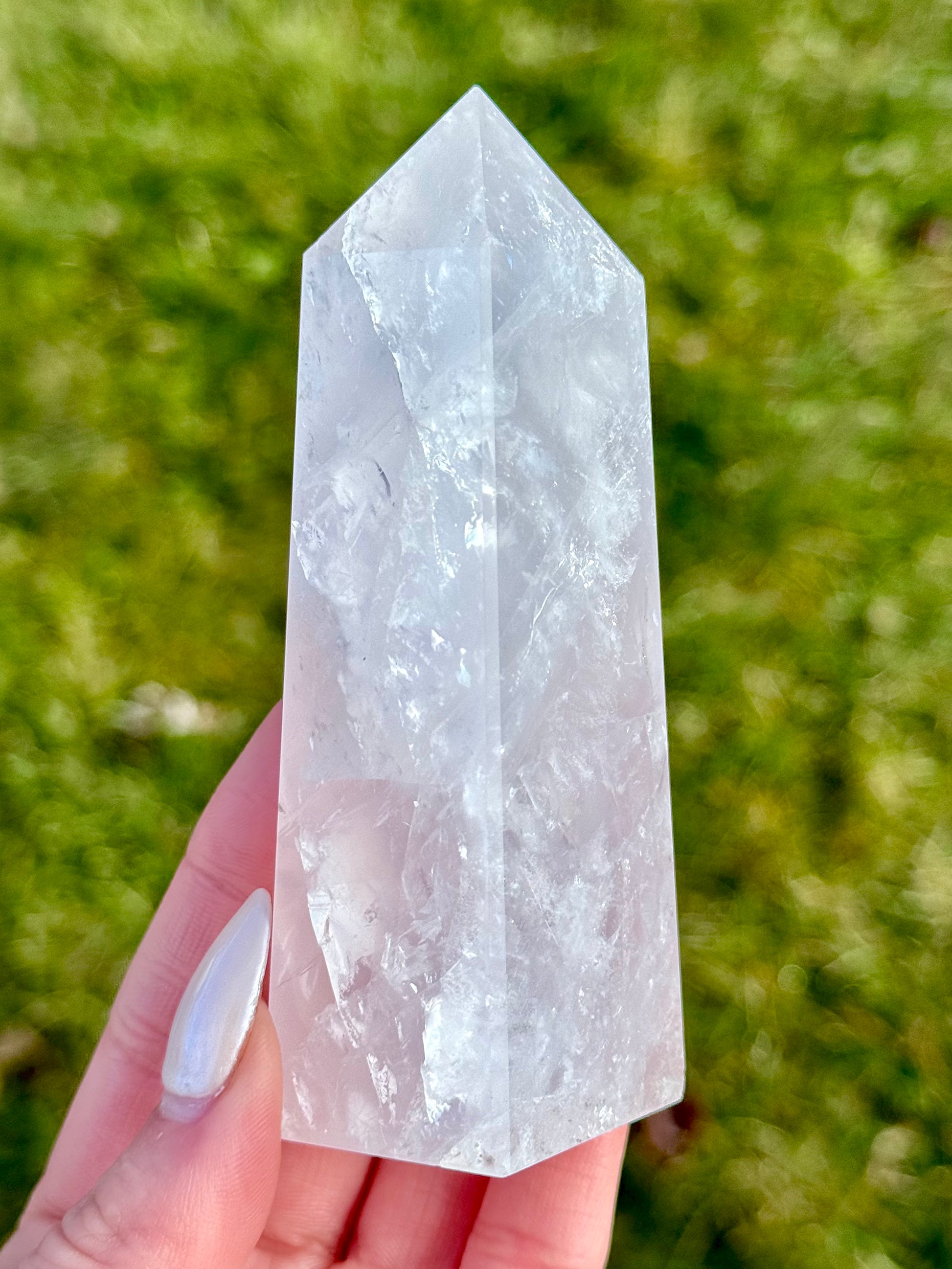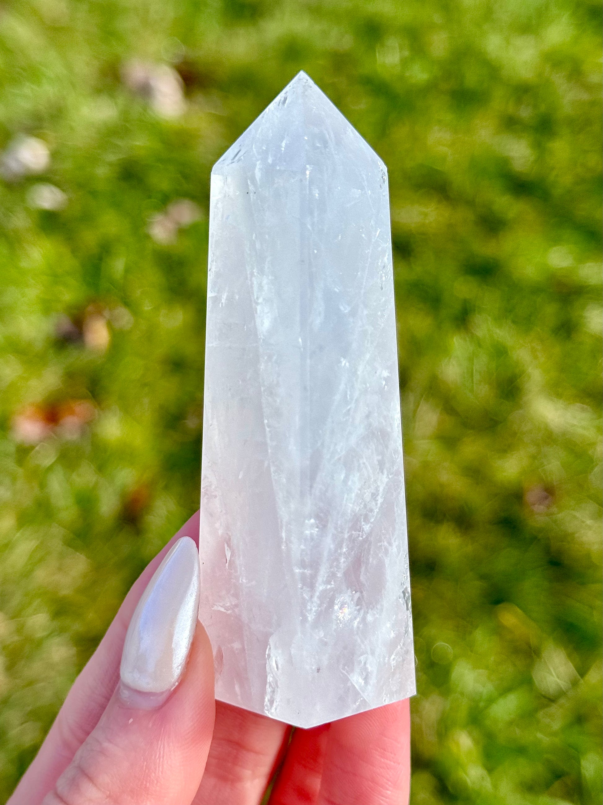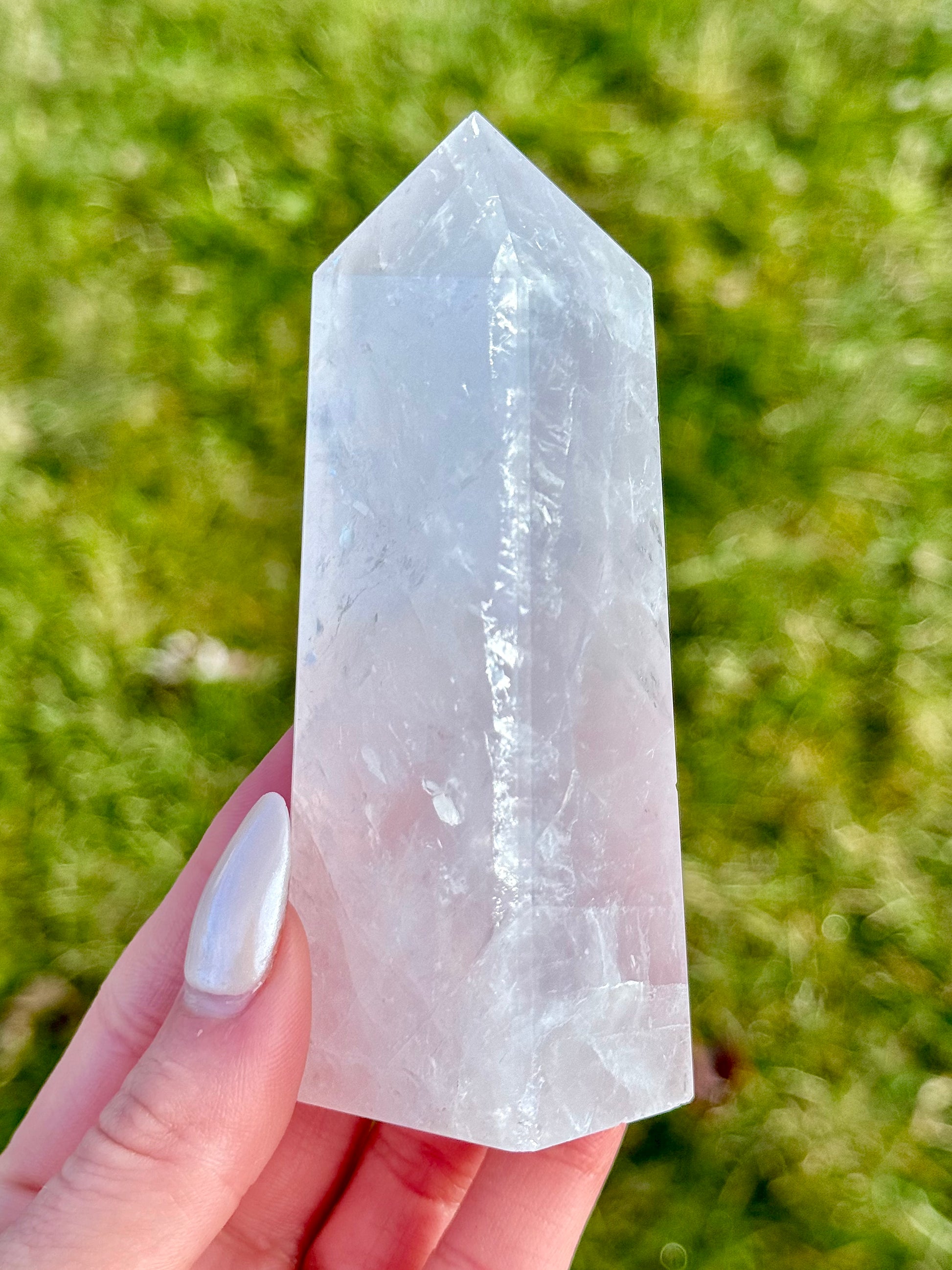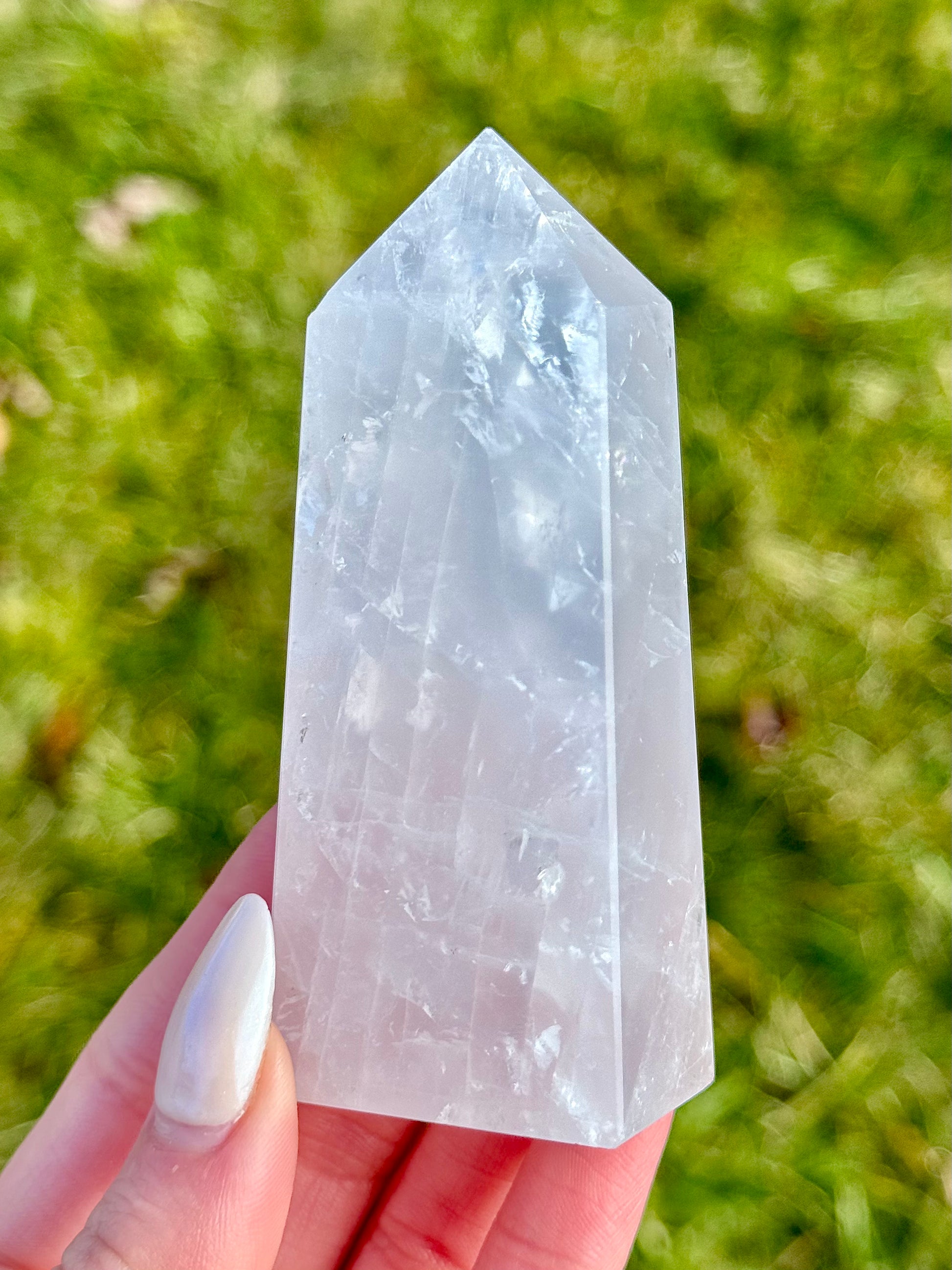 These Periwinkle Quartz Towers will certainly awe with their stunning rainbow shimmer and amazing periwinkle hue. The heights of these towers range from 3 1/4" to 4" tall.