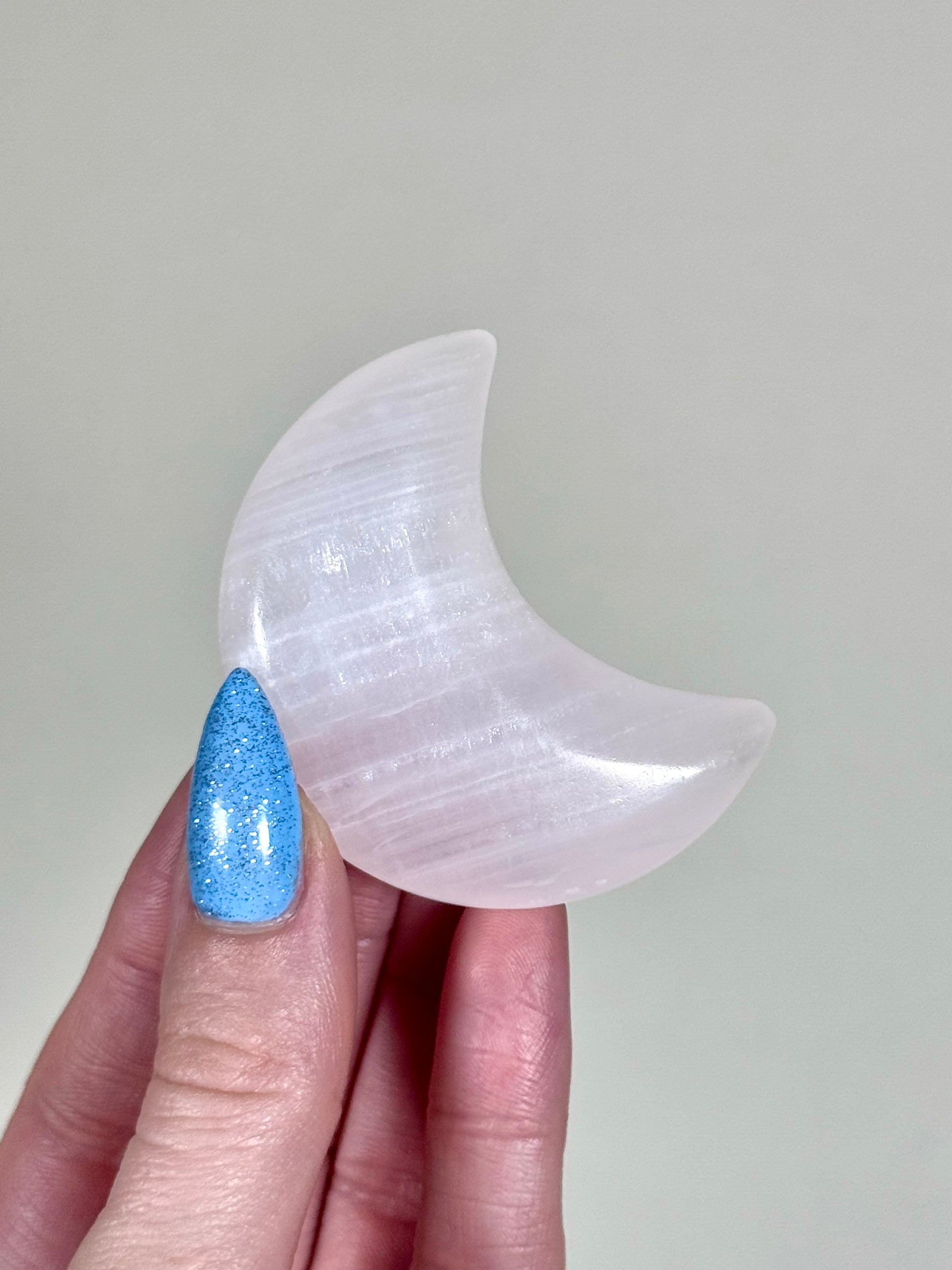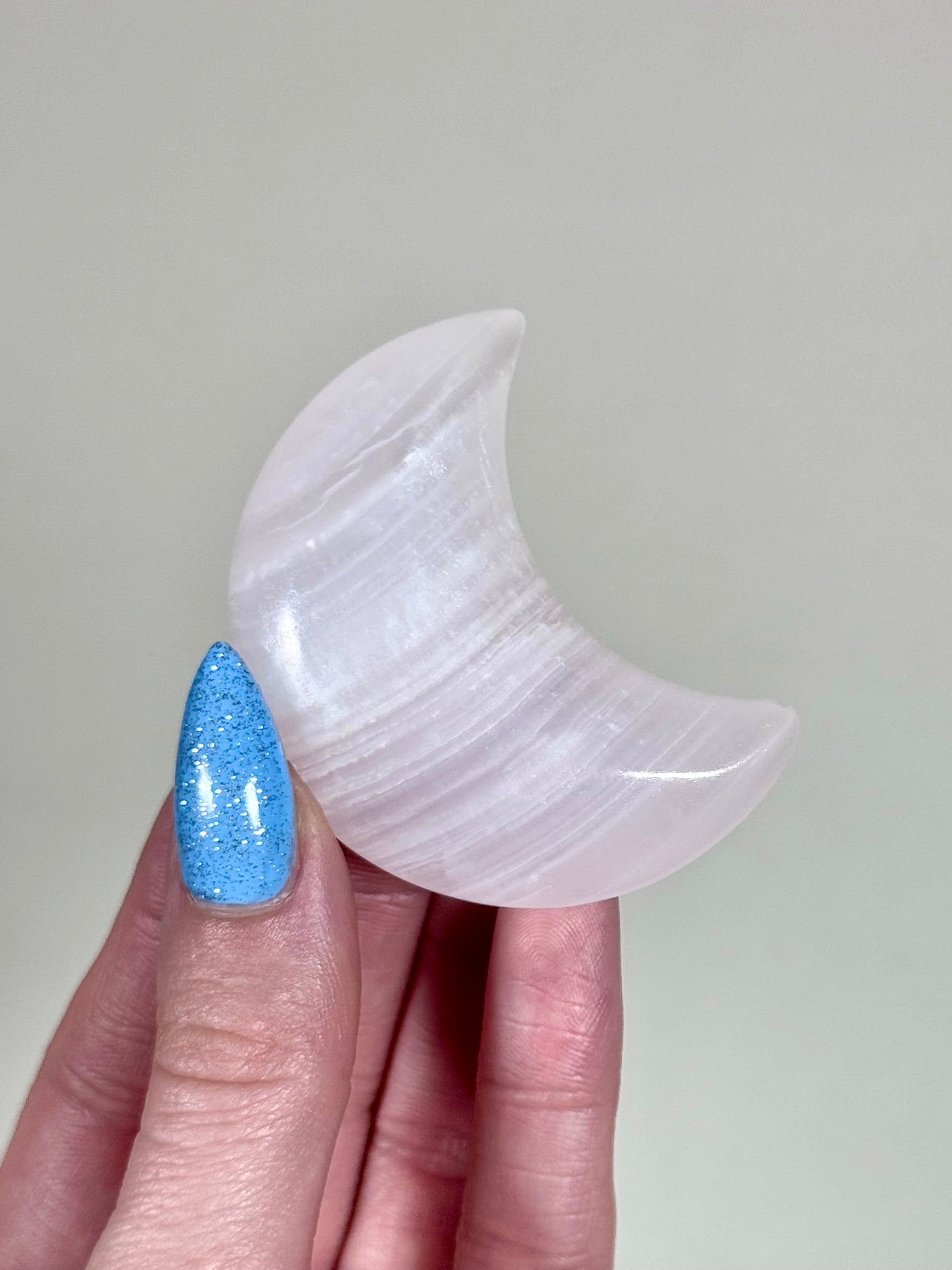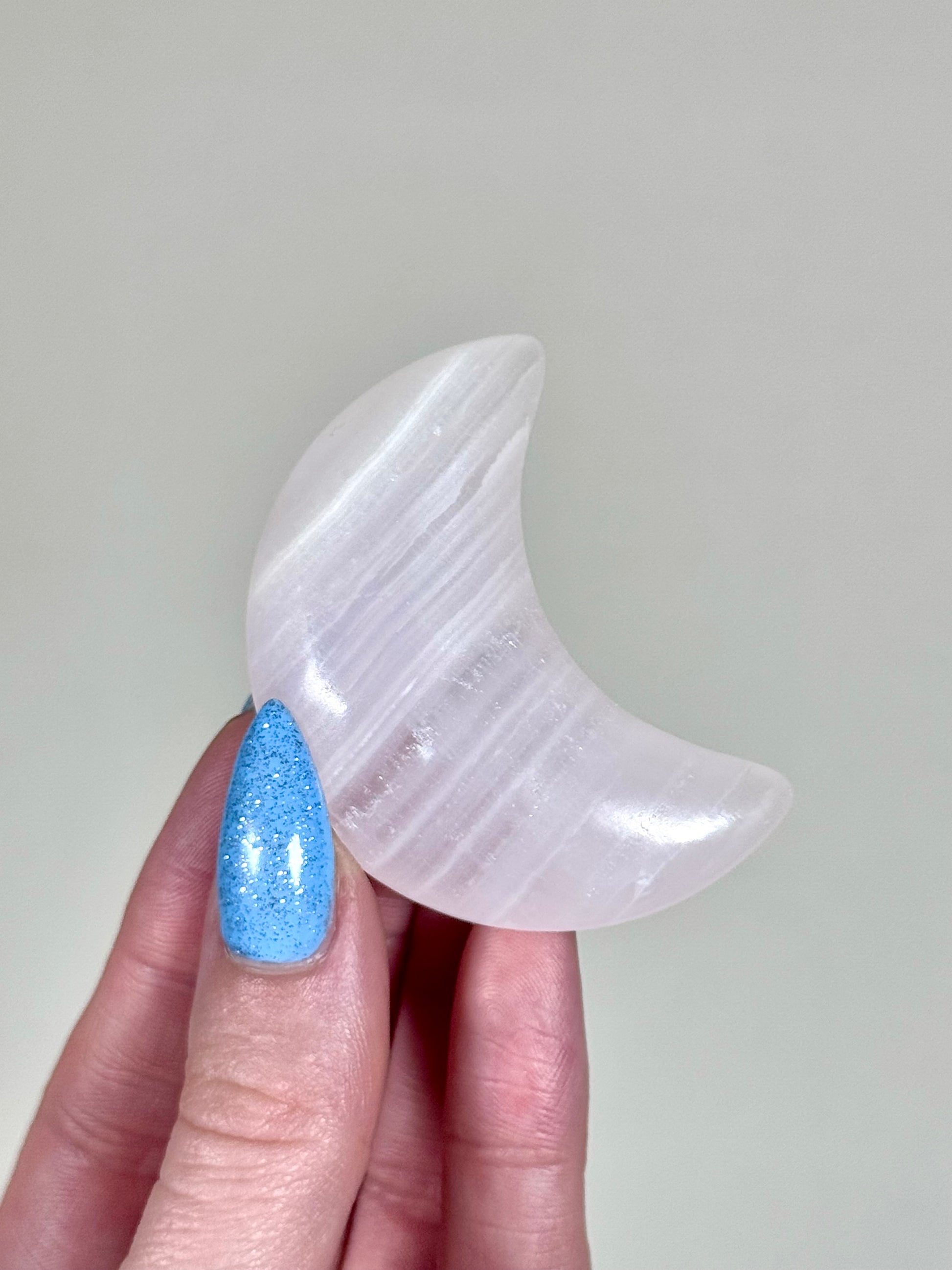 The UV reaction on these Pink Calcite Moon Carvings is very strong (see in last photo).