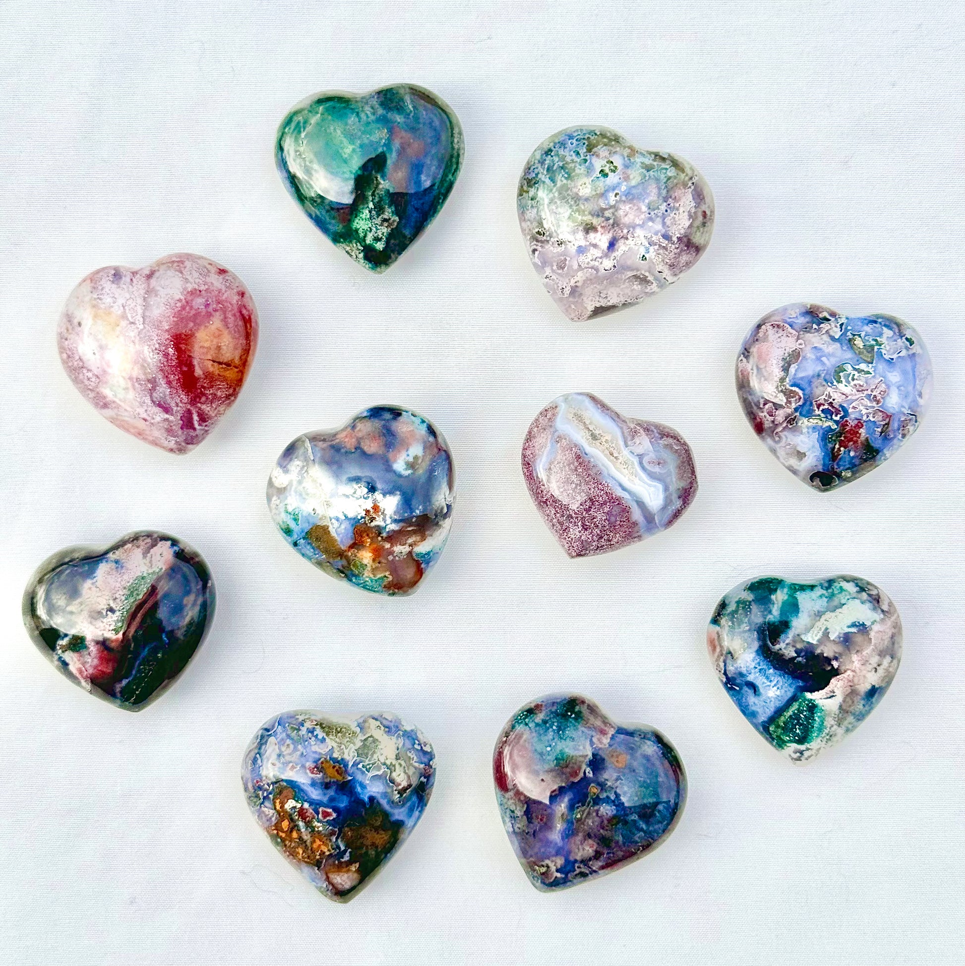Say hello to our beautiful, high-quality Mini Sea Jasper Hearts, selected at random for you. Each heart has unique coloring and some have quartz inclusions.