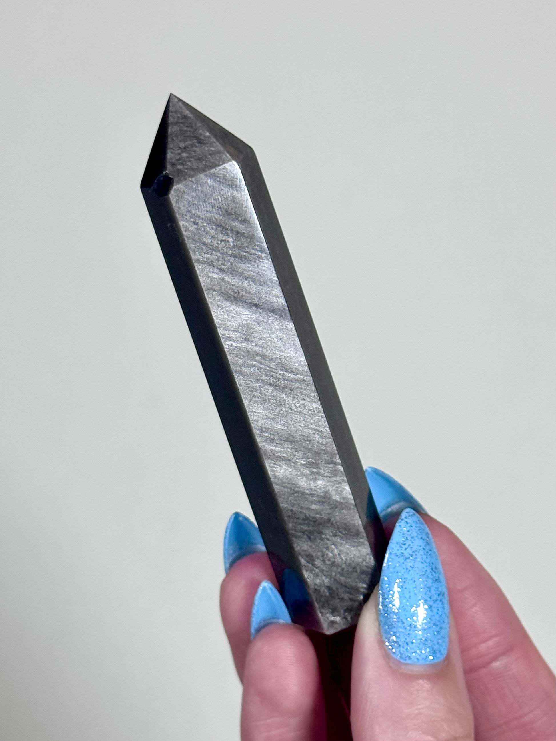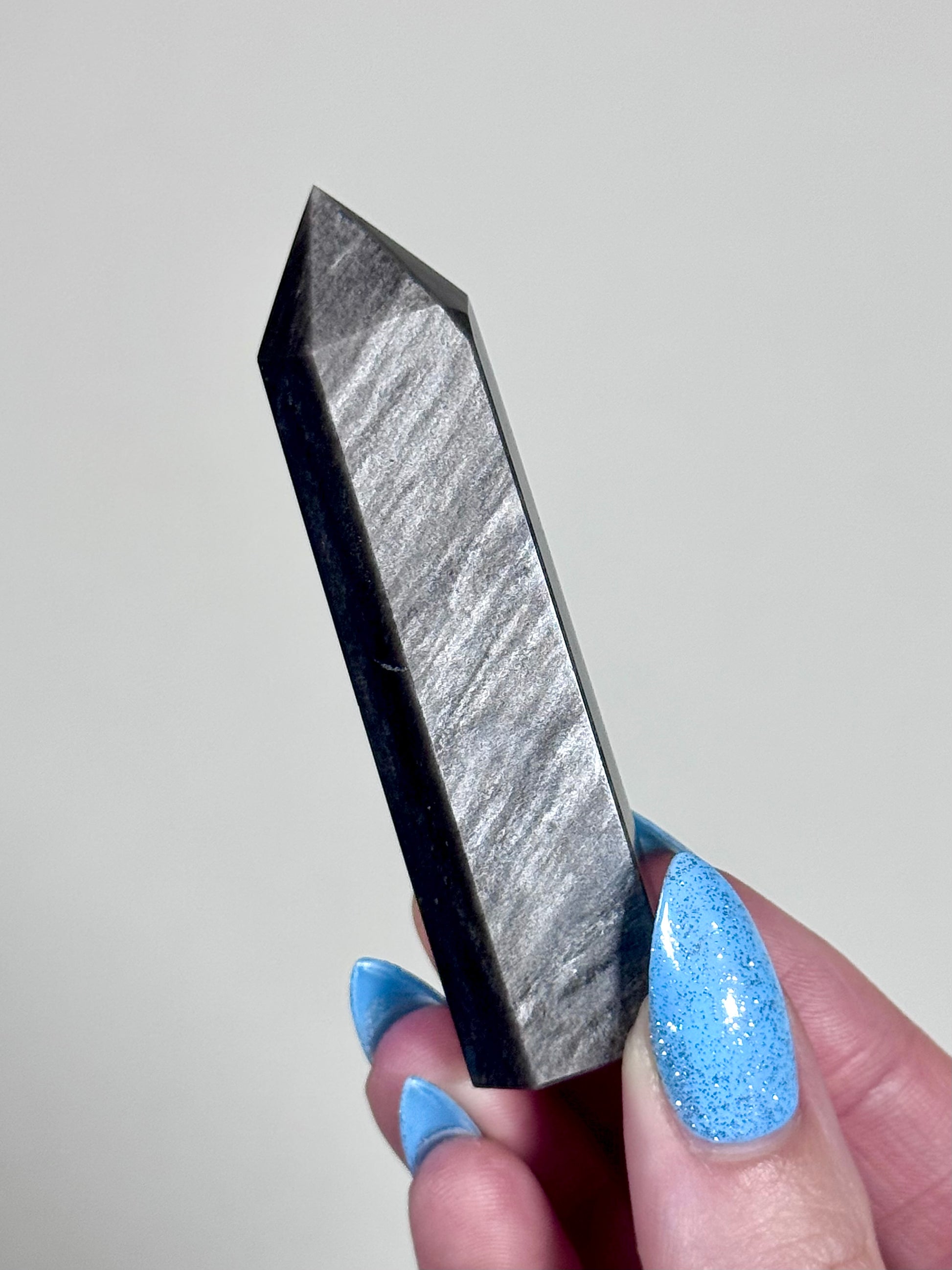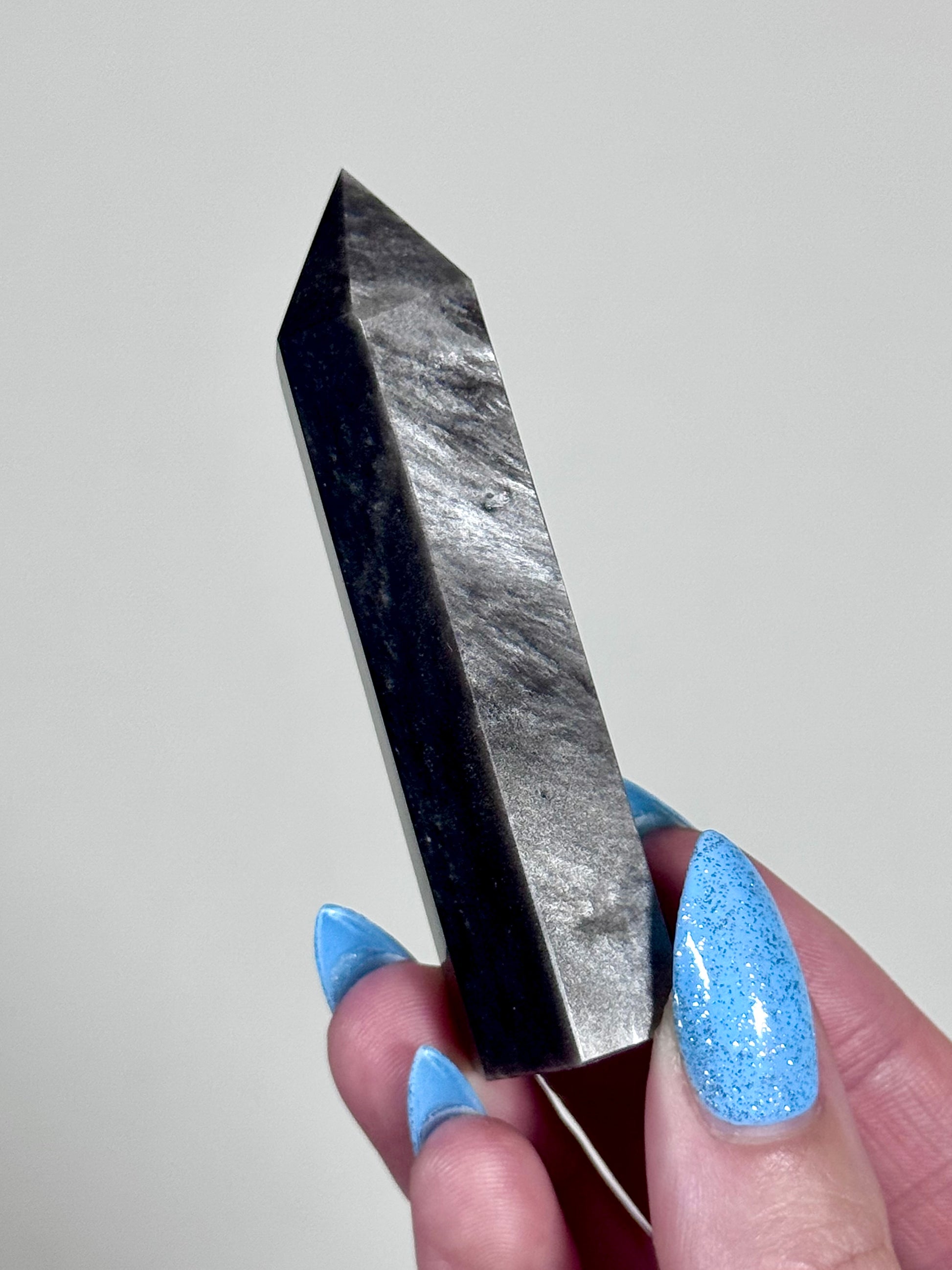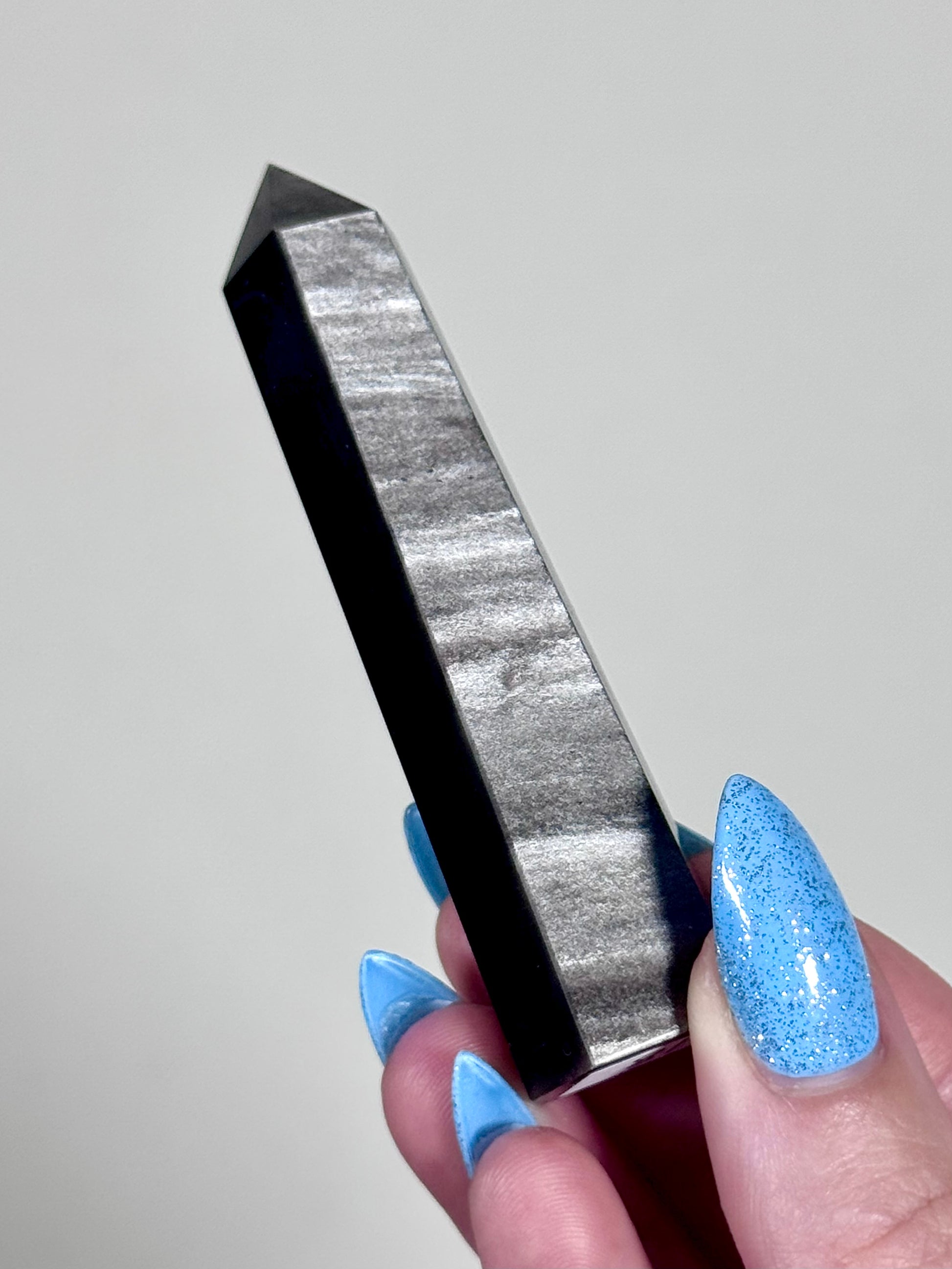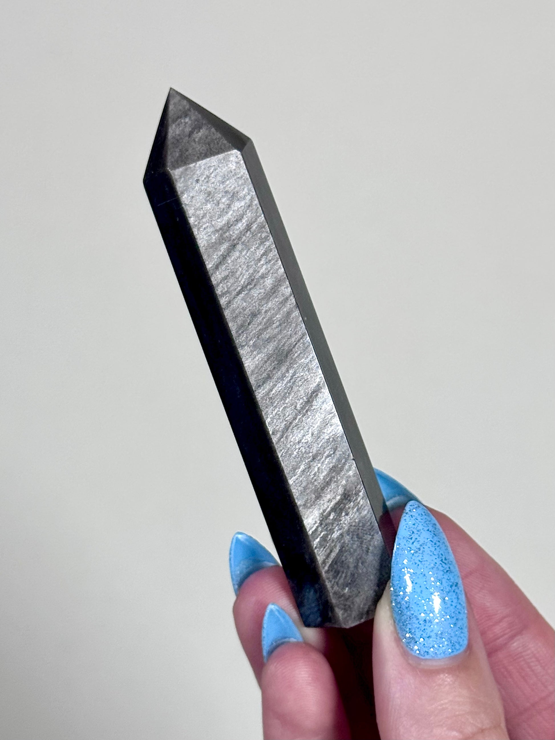 These Silver Obsidian Towers have beautiful flash and have heights ranging from 2 3/4” to 3 1/4” tall.