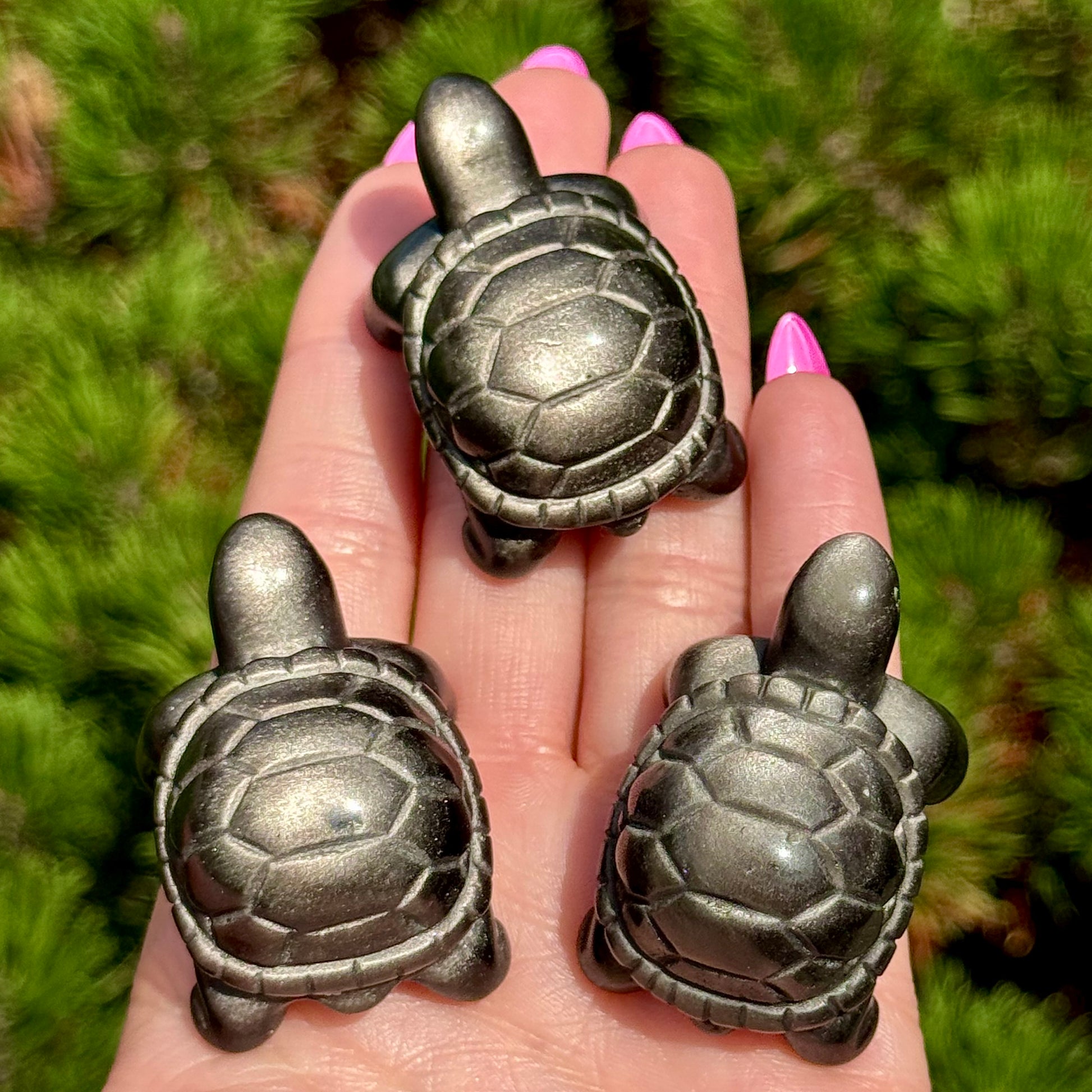 Silver Obsidian Turtle Carvings