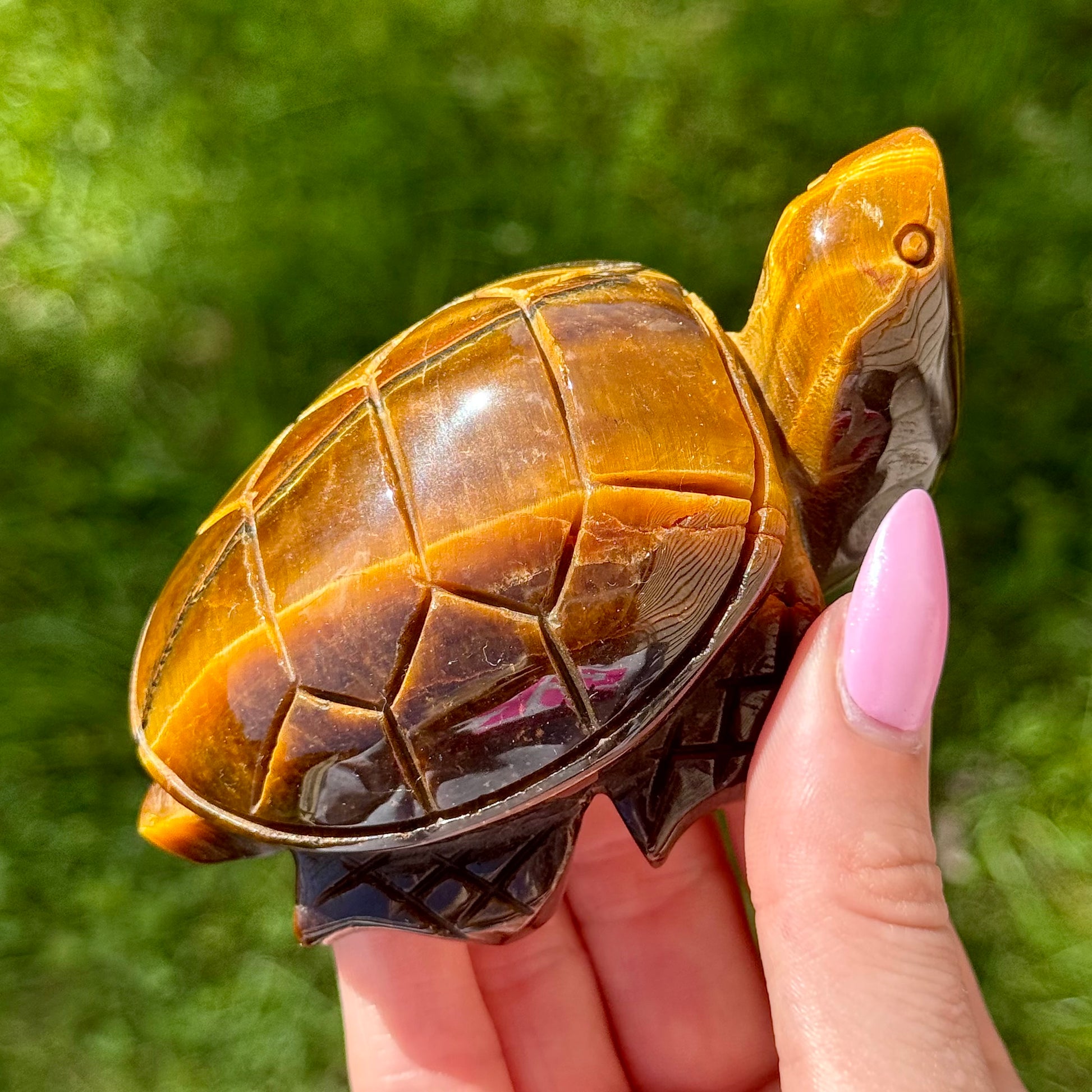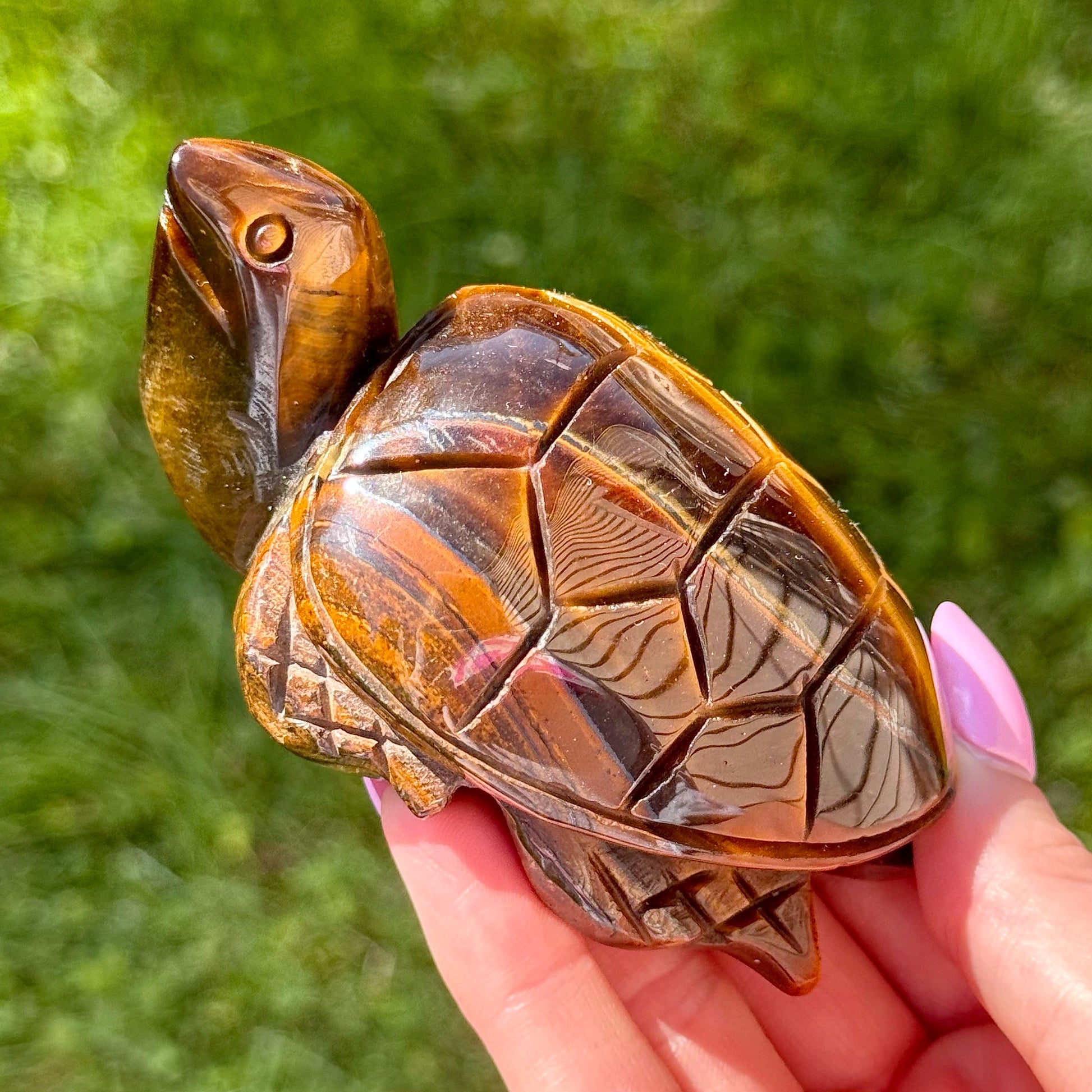 This Tiger's Eye Turtle Carving has such an amazing flash! Carved to perfection, this piece measures about 3 3/4" long.